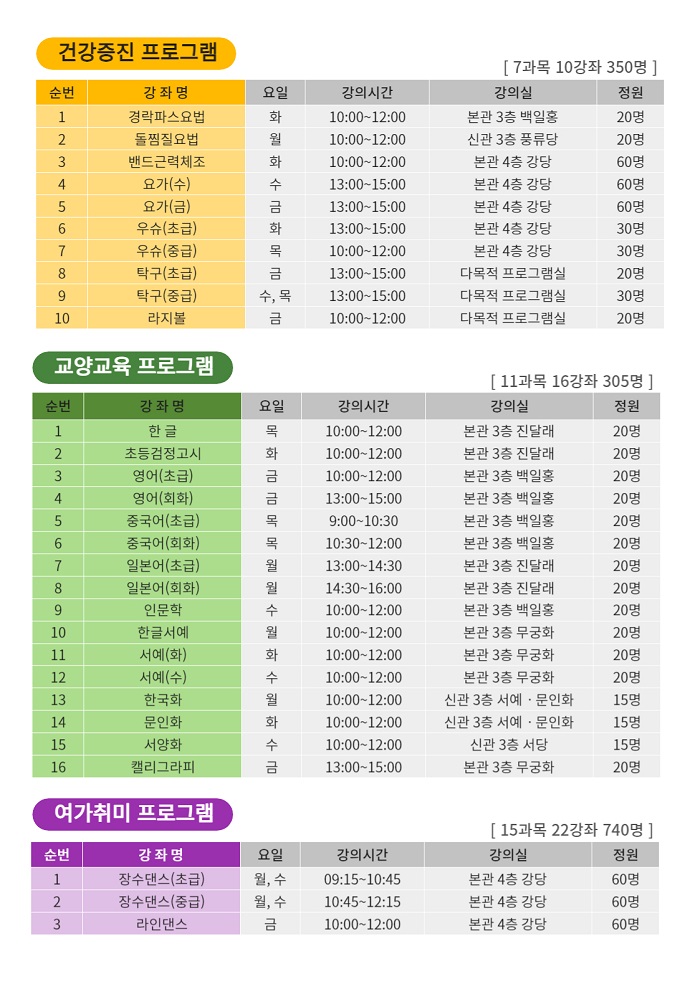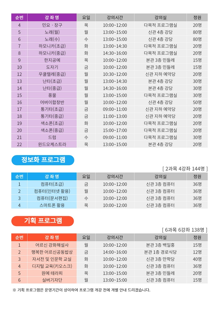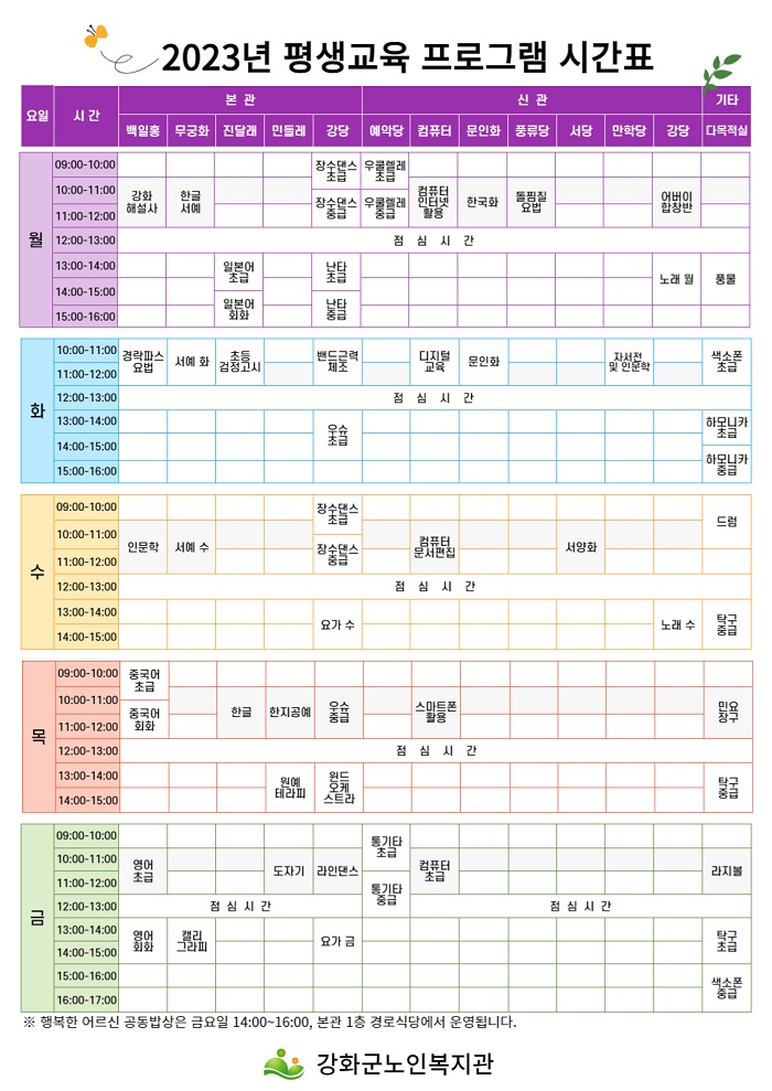 2023년 강화군 노인복지관 평생교육 프로그램 안내