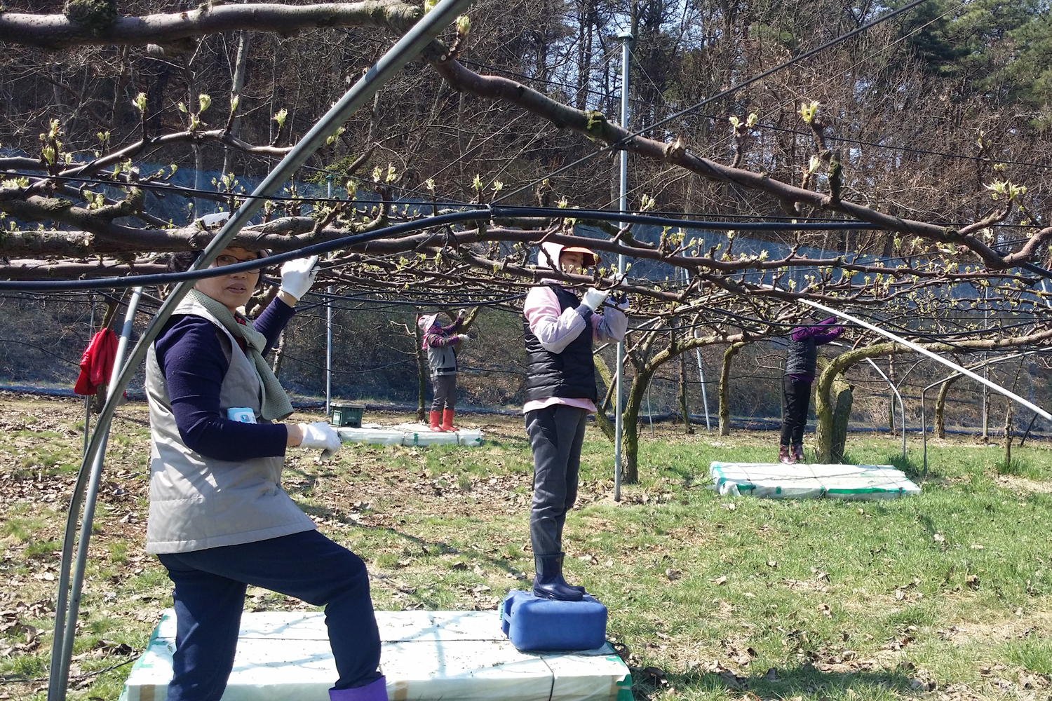 (사진 1매) 교동면 배 재배농가 꽃망울 따기 작업 현장