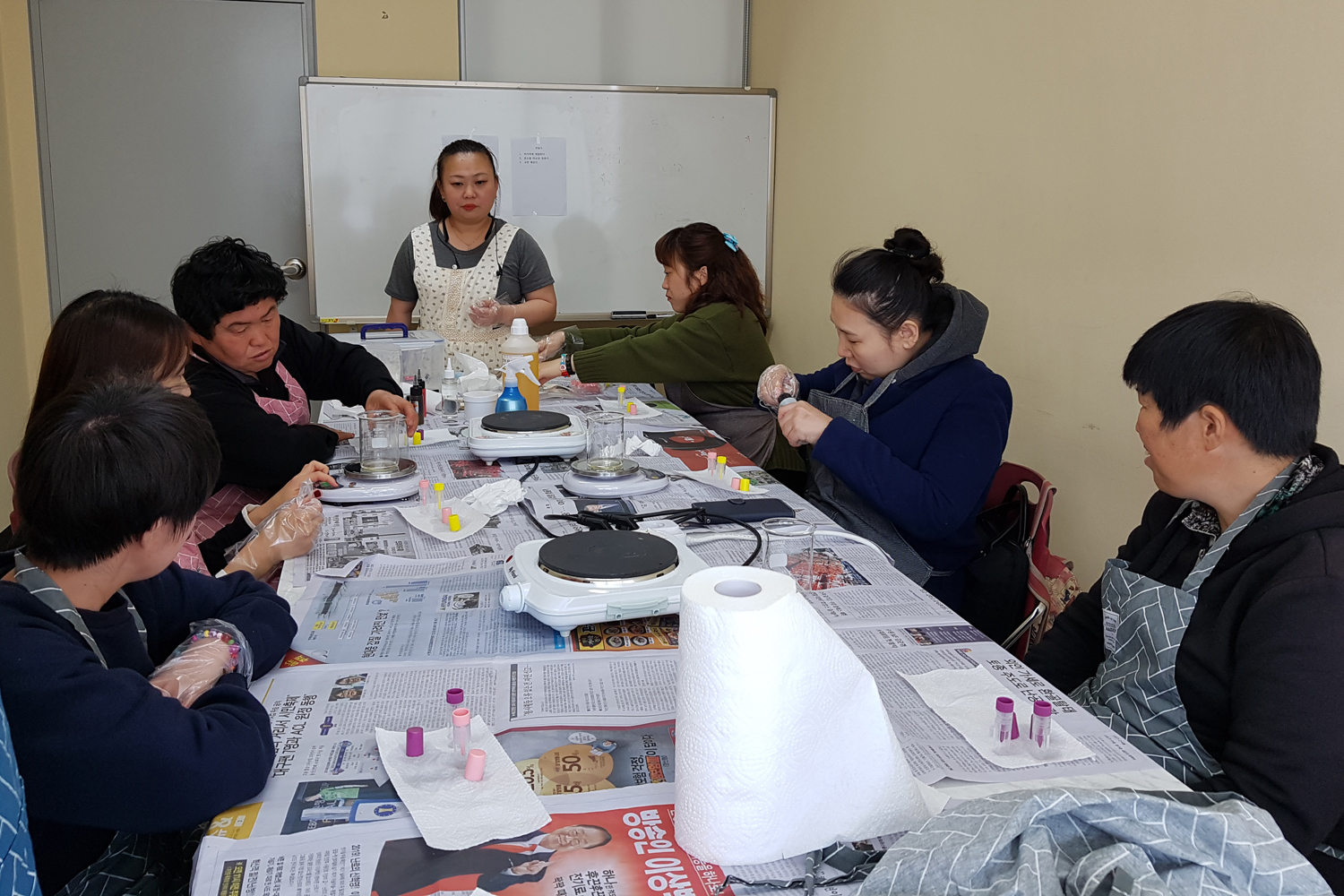 ‘천연화장품 만들기’는 방부제와 화학첨가물이 들어가지 않은 천연재료만으로 화장품을 직접 만드는 체험으로 송기분 강사의 지도 아래 주 1회 2시간씩 운영되고 있다.