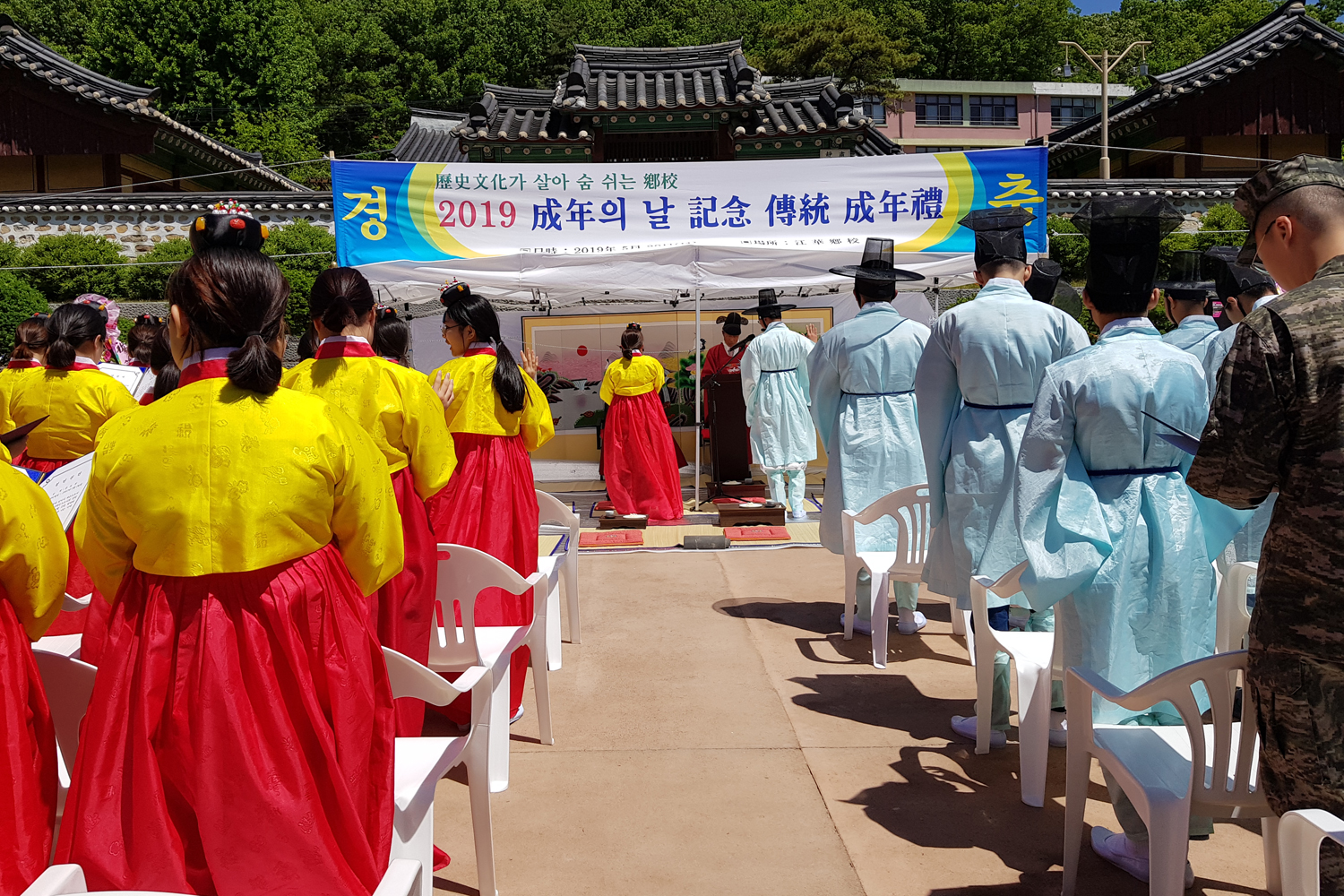 이번 강화향교에서 개최된 성년례는 관혼상제 중 첫 번째 통과의례인 성년례를 전통방식으로 재현했다. 이날 향교 유림과 유관단체장, 지역 주민 등 100여 명이 참석해 성년을 맞이하는 학생 및 장병들을 축하했으며, 문묘향배에 이어 성년자 경례와 호명, 그리고 성년으로서의 다짐을 알리는 성년자 선서의 순으로 진행됐다. 특히, 술 마시는 예법 교육을 통해 성년으로서의 권리와 책무를 일깨워주는 시간을 가졌다.