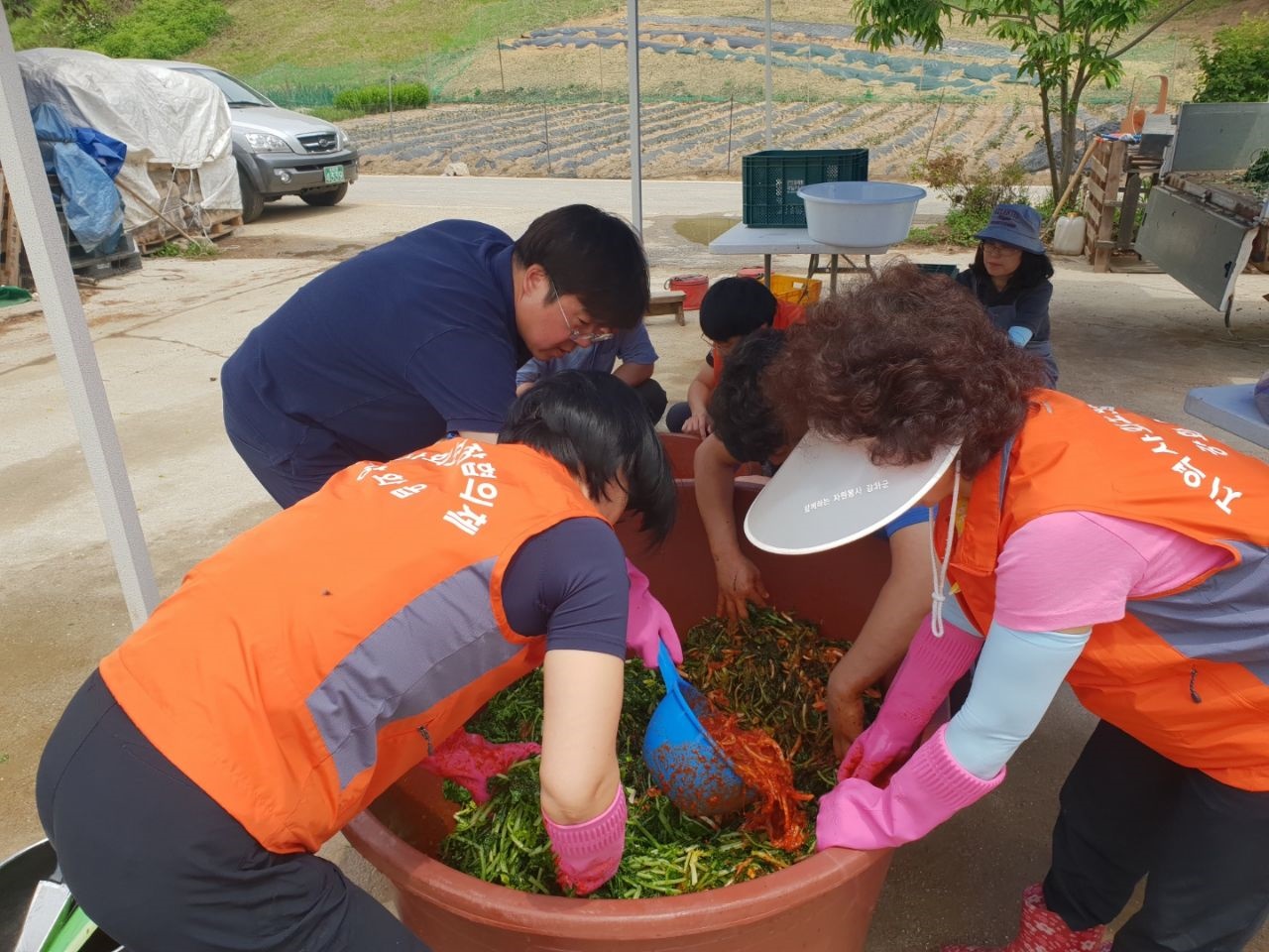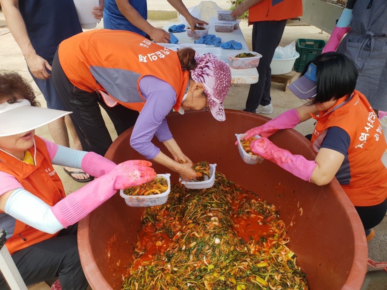 김치 담그기 행사는 협의체가 지난 2016년부터 정기적으로 추진하고 있는 사업이다. 이날 20여 명의 위원들은 주말임에도 아침 일찍부터 위원장 집에 모여 지난 4월 직접 심은 열무 등을 재료로 50여 통의 김치를 담갔다.
