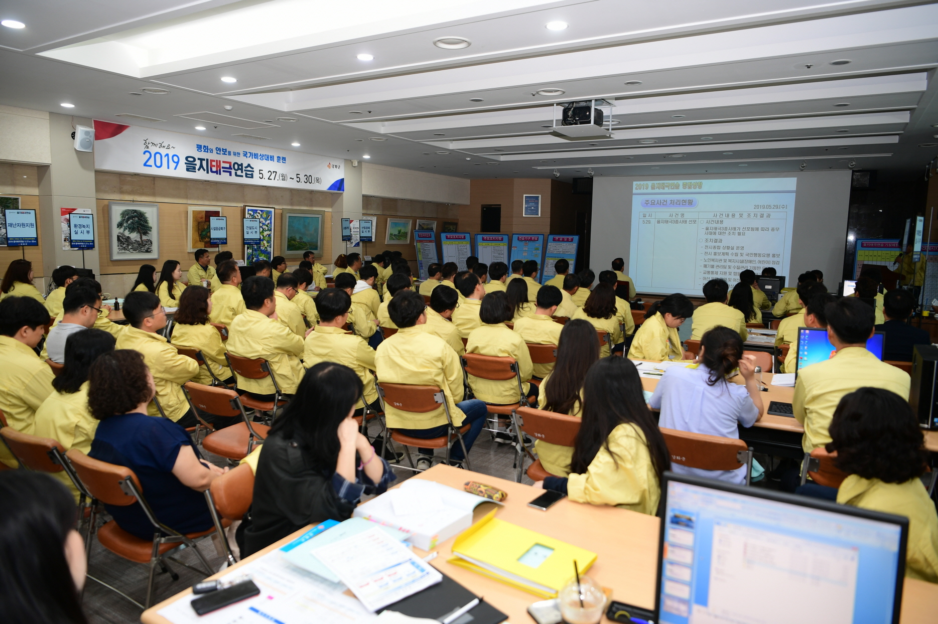 강화군(군수 유천호)은 지난 27일부터 30일까지 3박 4일간 군청 진달래홀에서 진행된 ‘2019 을지태극연습’이 민‧관‧군‧경‧소방서 및 유관단체 약 800여 명이 참여한 가운데 성공적으로 마무리됐다고 밝혔다.