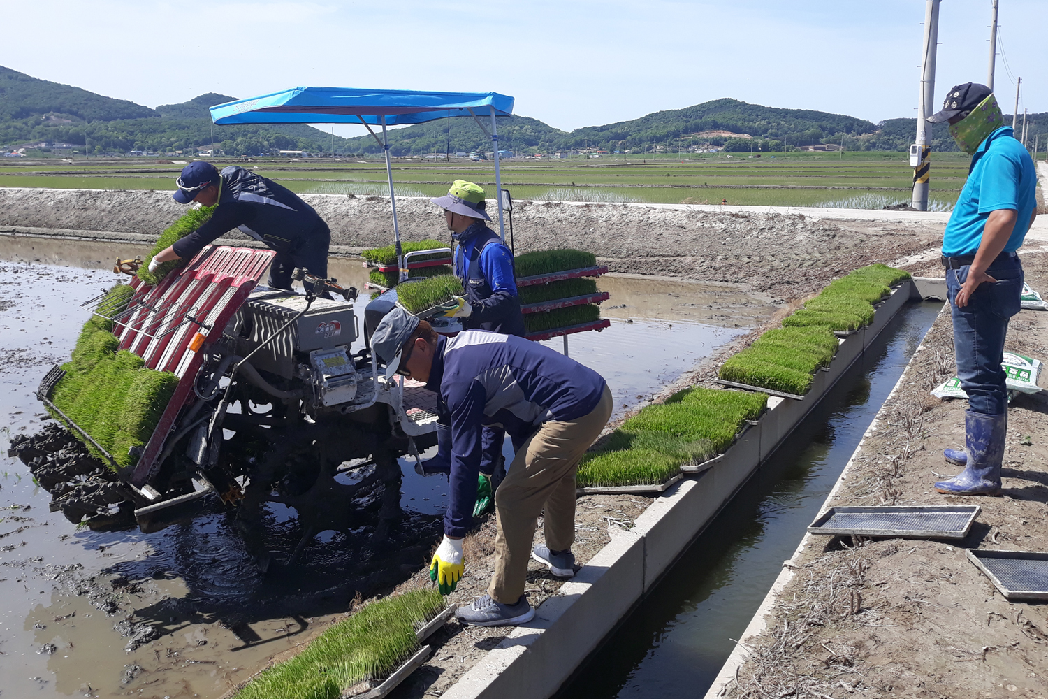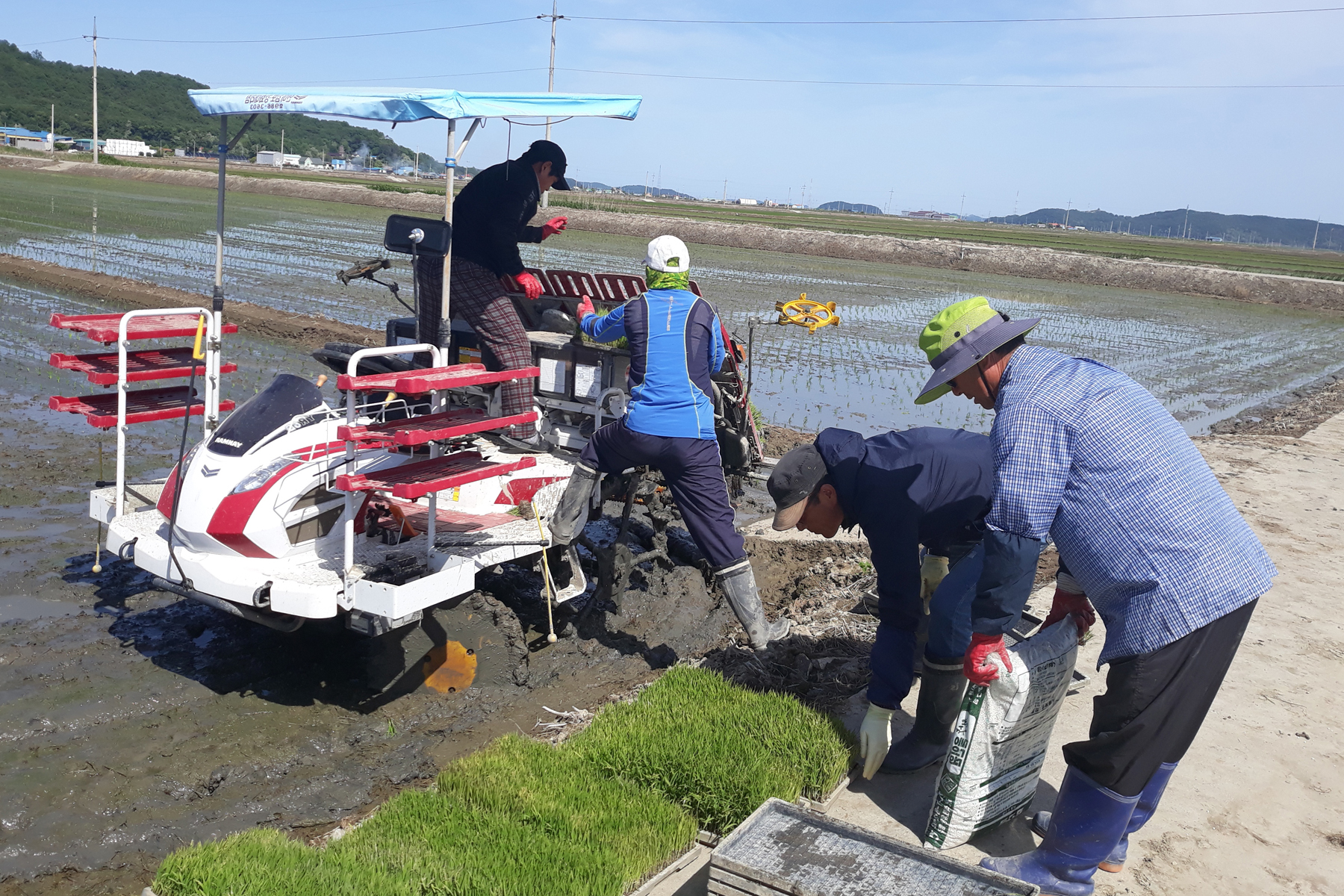 이장을 중심으로 하는 마을 사람들과 삼산면농촌지도자 회원 20여 명은 지난 28일부터 3개 조로 나뉘어 곤경에 처한 농부의 논 12ha에 모를 냈다.