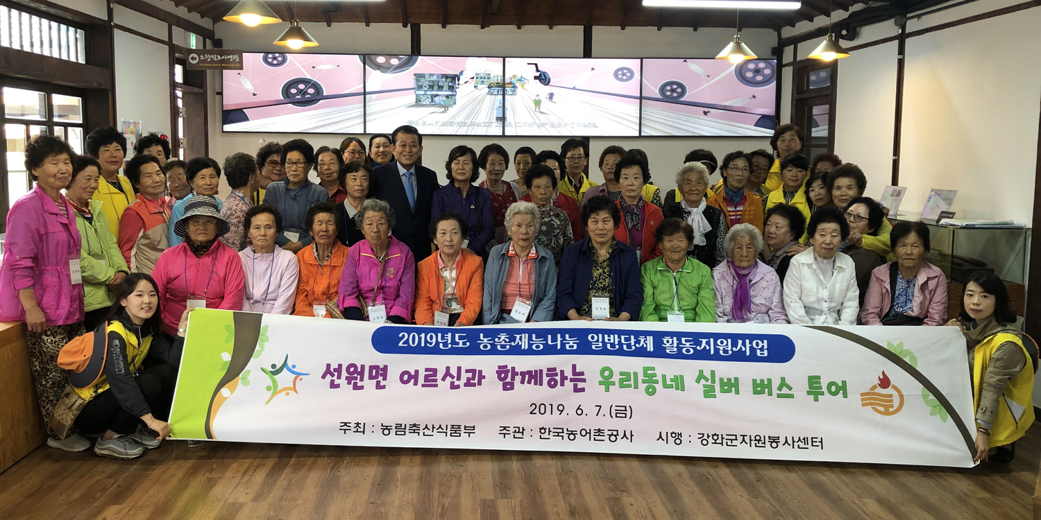 한편, 강화군자원봉사센터는 농림축산식품부에서 주최하고 한국농어촌공사에서 주관하는 「2019 농촌재능나눔 공모사업」에 선정되면서 이번 버스 투어를 시작으로 총 8번의 버스 투어와 4번의 효행잔치를 개최할 계획이다.