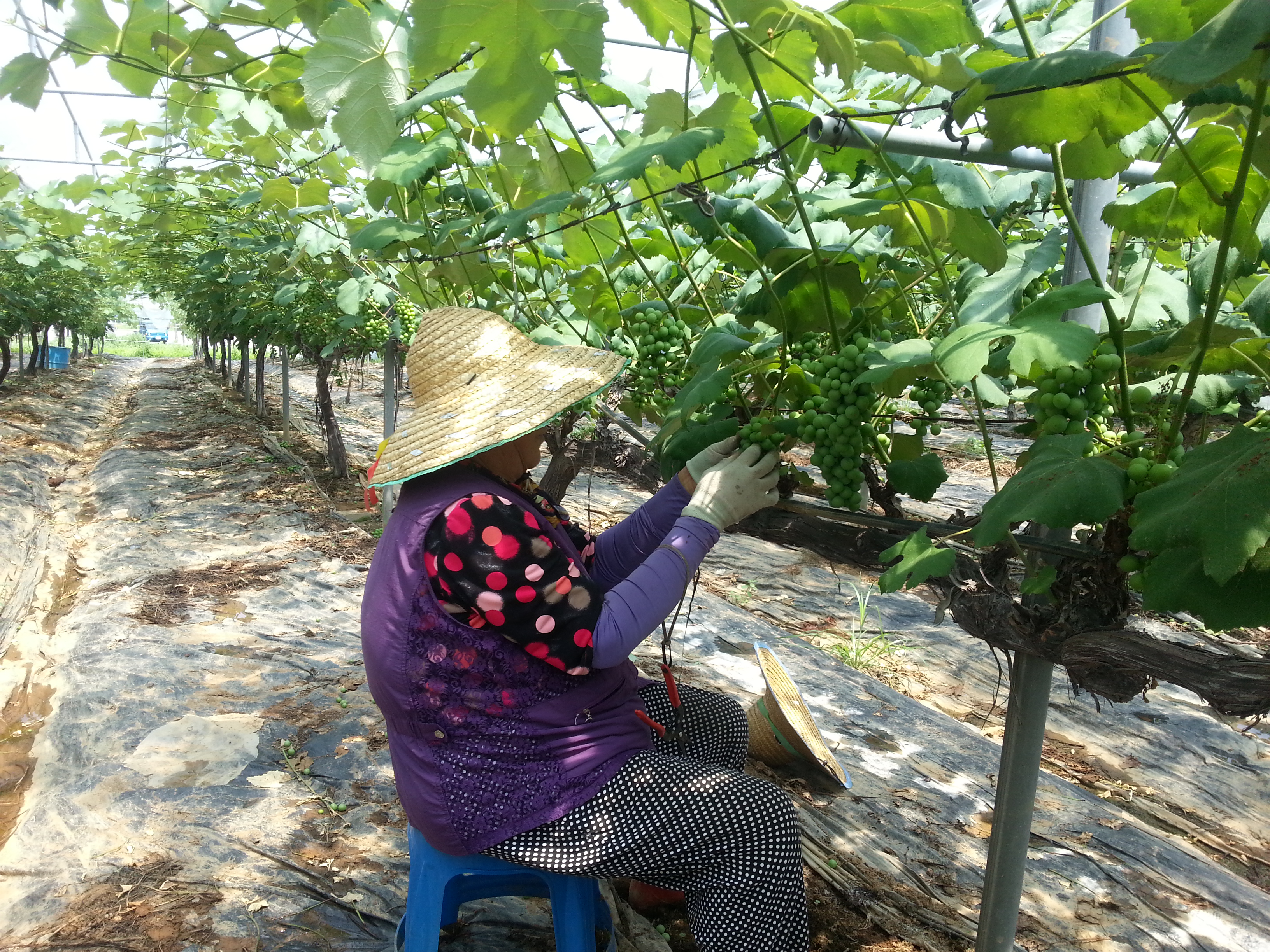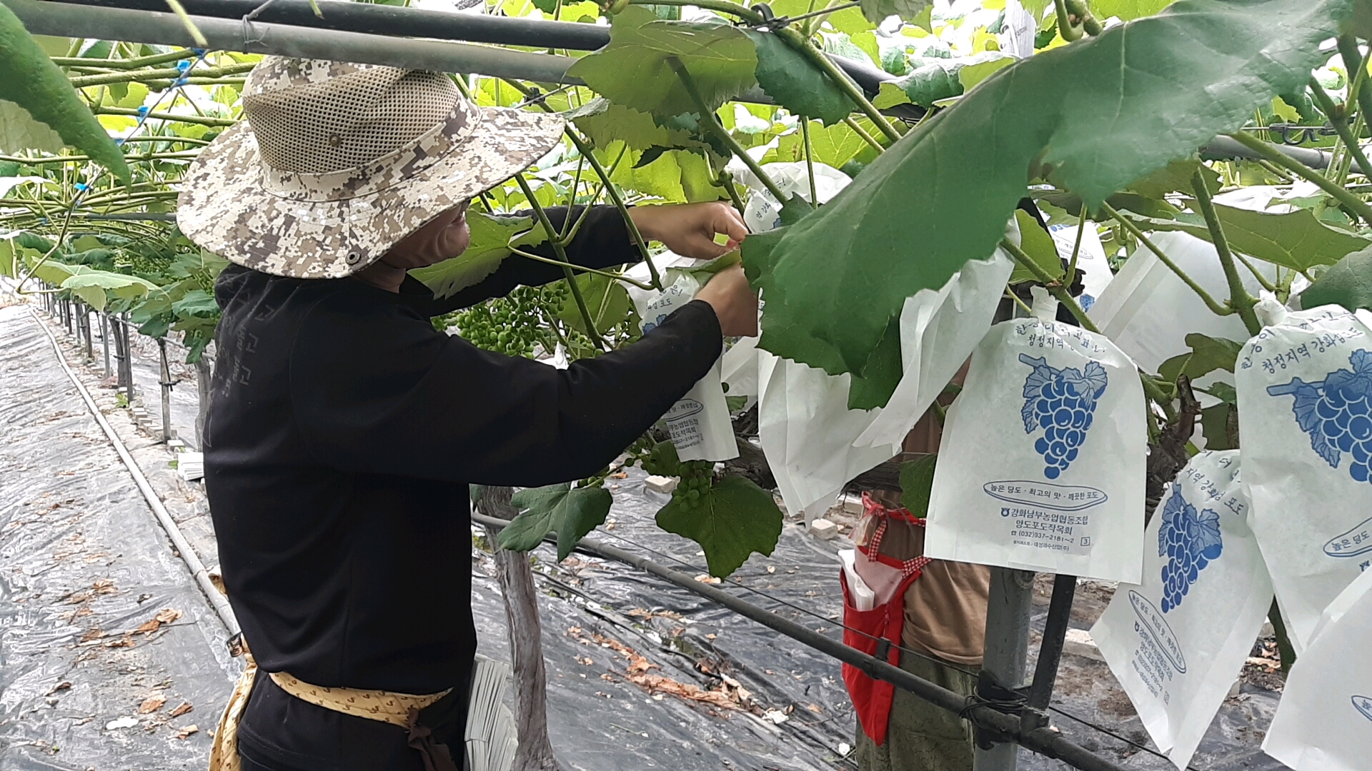 현재 푸릇푸릇한 포도 송이는 알 솎기와 봉지 씌우기 작업을 거쳐 풍성하고 향긋한 강화섬포도로 탄생하게 된다. 포도송이에 봉지를 씌우게 되면 병충해와 폭염으로부터 과일의 손실을 막고 농약이 묻는 걸 방지할 수 있다.