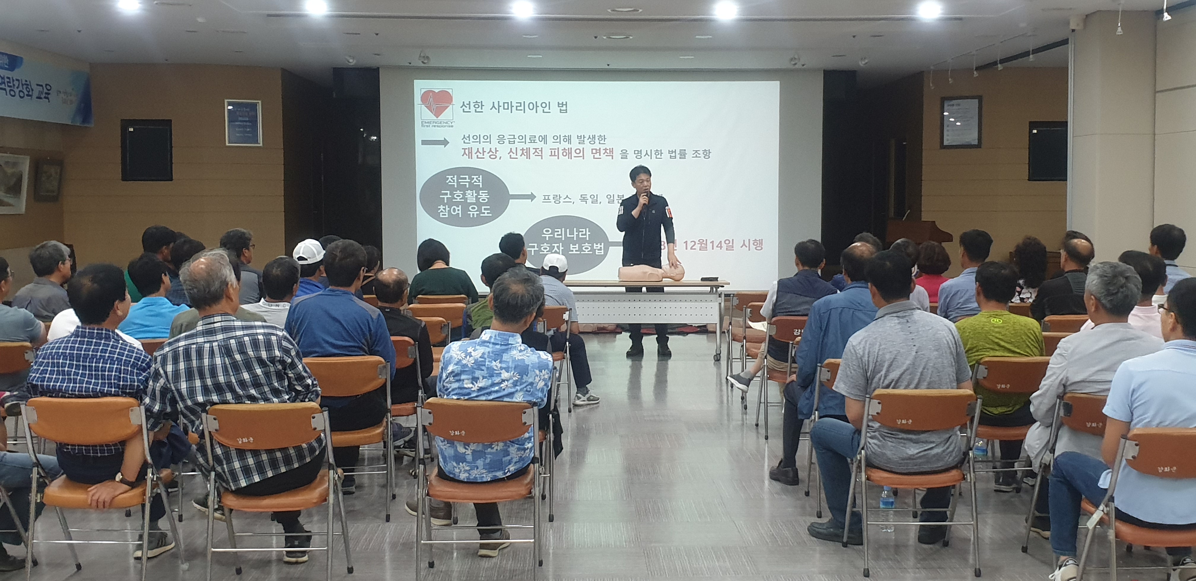 특히, 교육에 참석한 단원 전원이 심폐소생술 실습을 직접 체험함으로써 재난발생 시 현장에서 신속한 응급조치로 인명피해를 최소화할 수 있는 재난 대응능력을 키웠다.