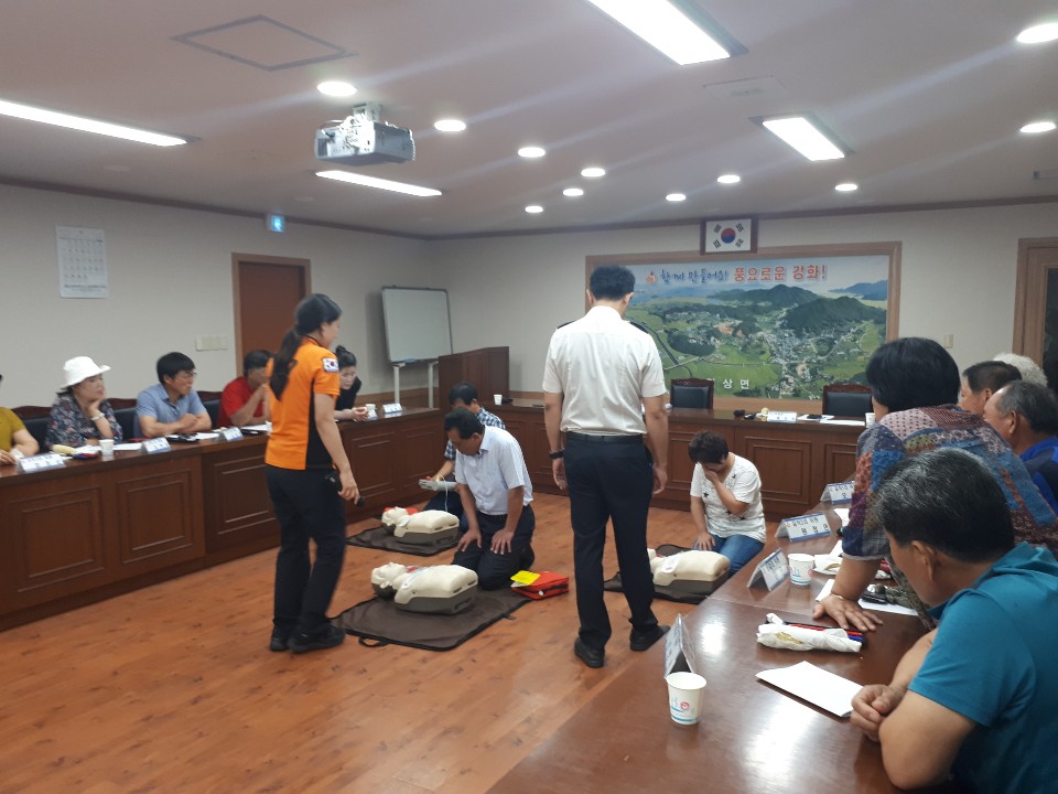 이날 강화소방서 전문가의 진행으로 심폐소생술을 비롯해 응급상황관리, 자동제세동기 사용방법 등을 실제상황과 같이 실습했다.