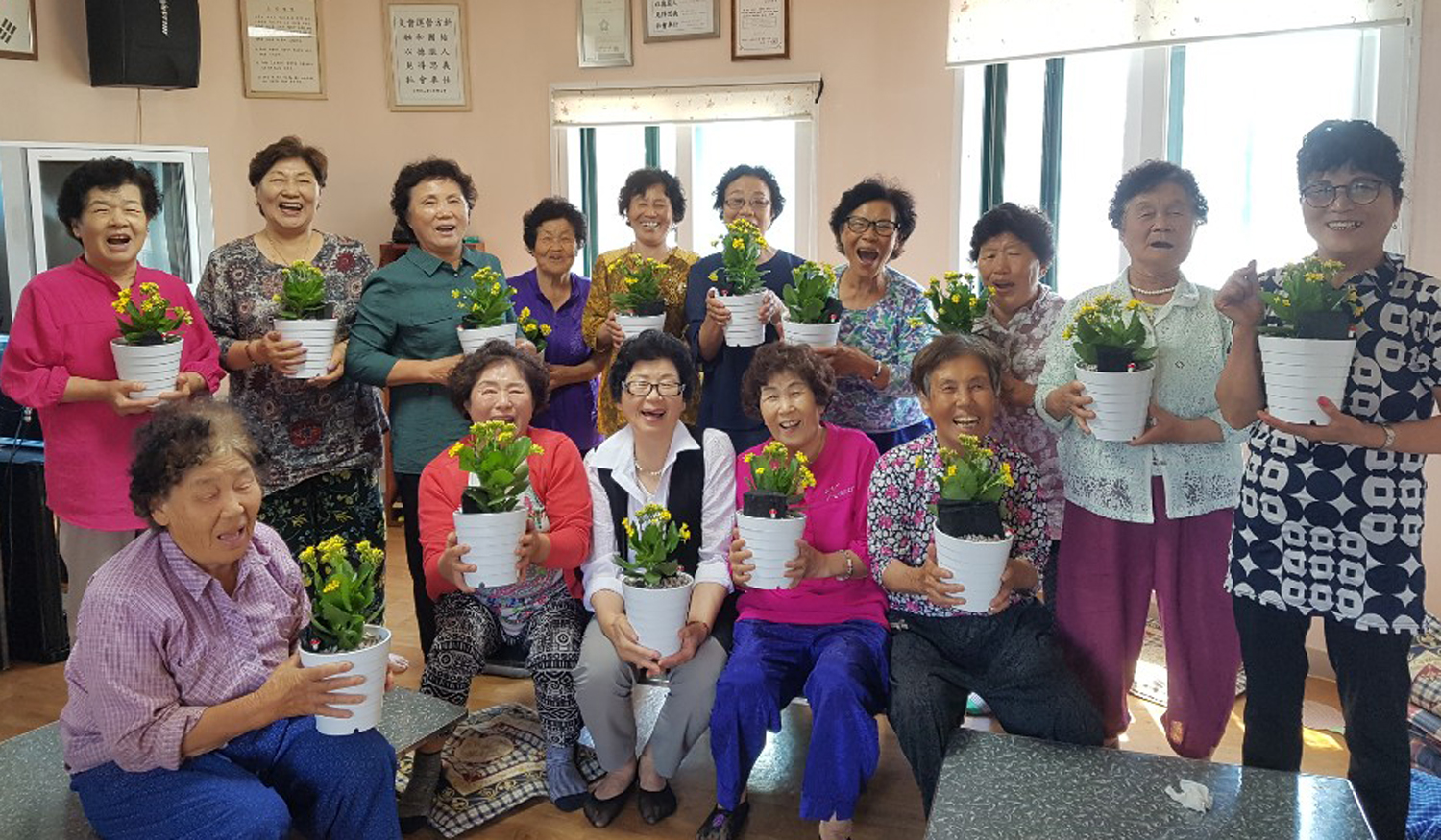 본 사업은 12개 면 70여 개소 경로당의 1천여 명을 대상으로 추진하고 있다. 원예 수업을 통해 사회성 향상은 물론 다양한 꽃을 접함으로써 흥미를 자극하는 등 긍정적인 변화를 이끌어 내고 있다.