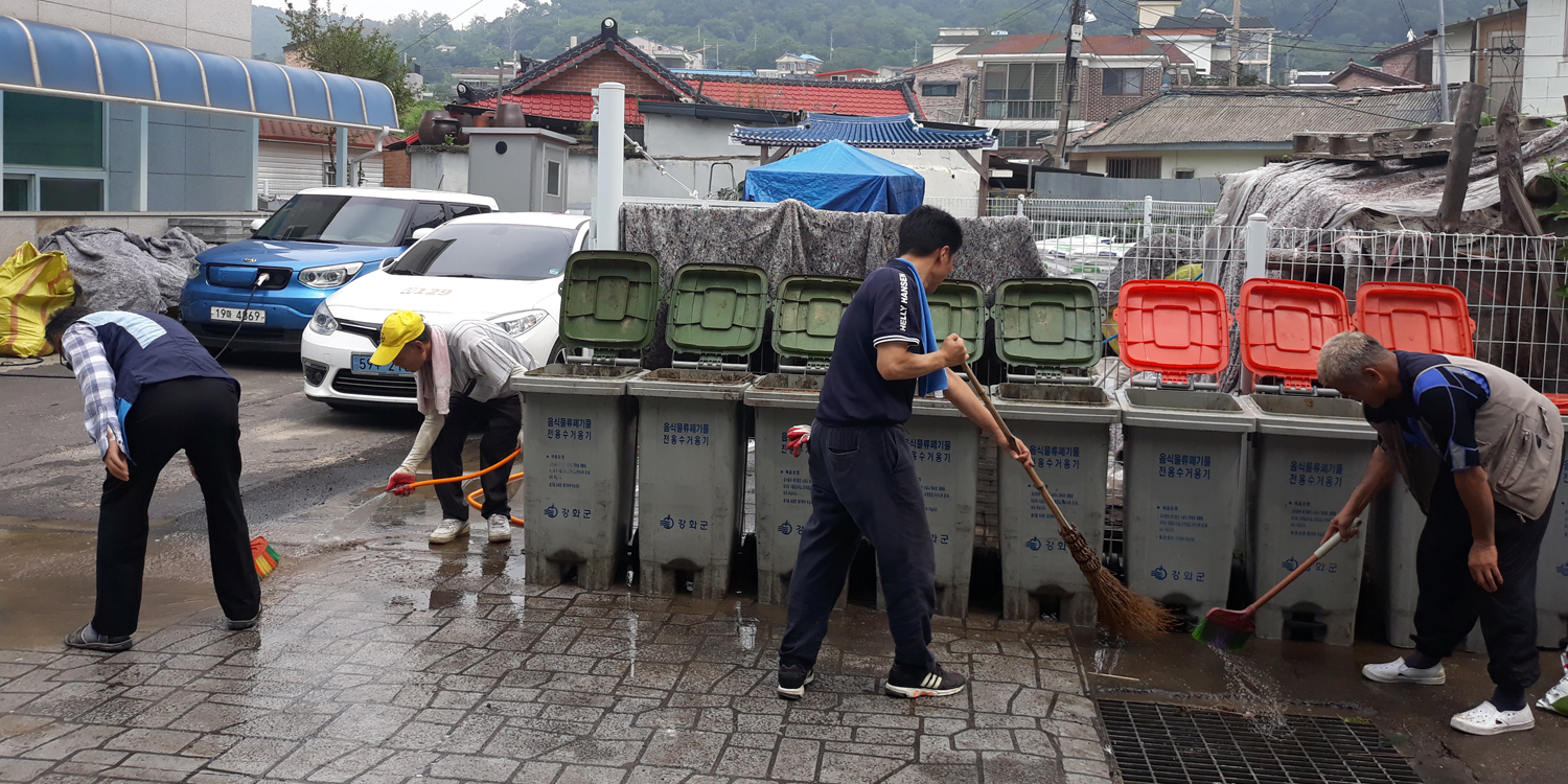 강화군 강화읍(읍장 이동수)은 장마 후 고온다습한 기후로 인해 악취 발생 및 미관을 저해하고 있는 음식물 쓰레기통에 대해 물청소를 단계적으로 시작했다.