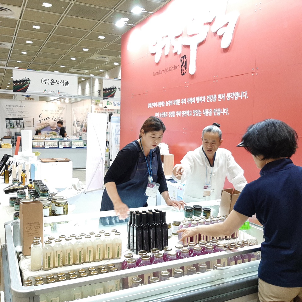 농가의 부엌은 이날 강화섬쌀로 만든 오리지날 식혜와 자색고구마가 첨가된 식혜 보라, 참깨․들깨로 만든 참들기름 세트, 블루베리를 농축한 블루베리즙 세트, 아삭한 오이 피클 등을 전시해 기업체 구매담당자, 마트 상품기획자, 유통 바이어들을 상대로 마케팅 활동을 펼쳤다.