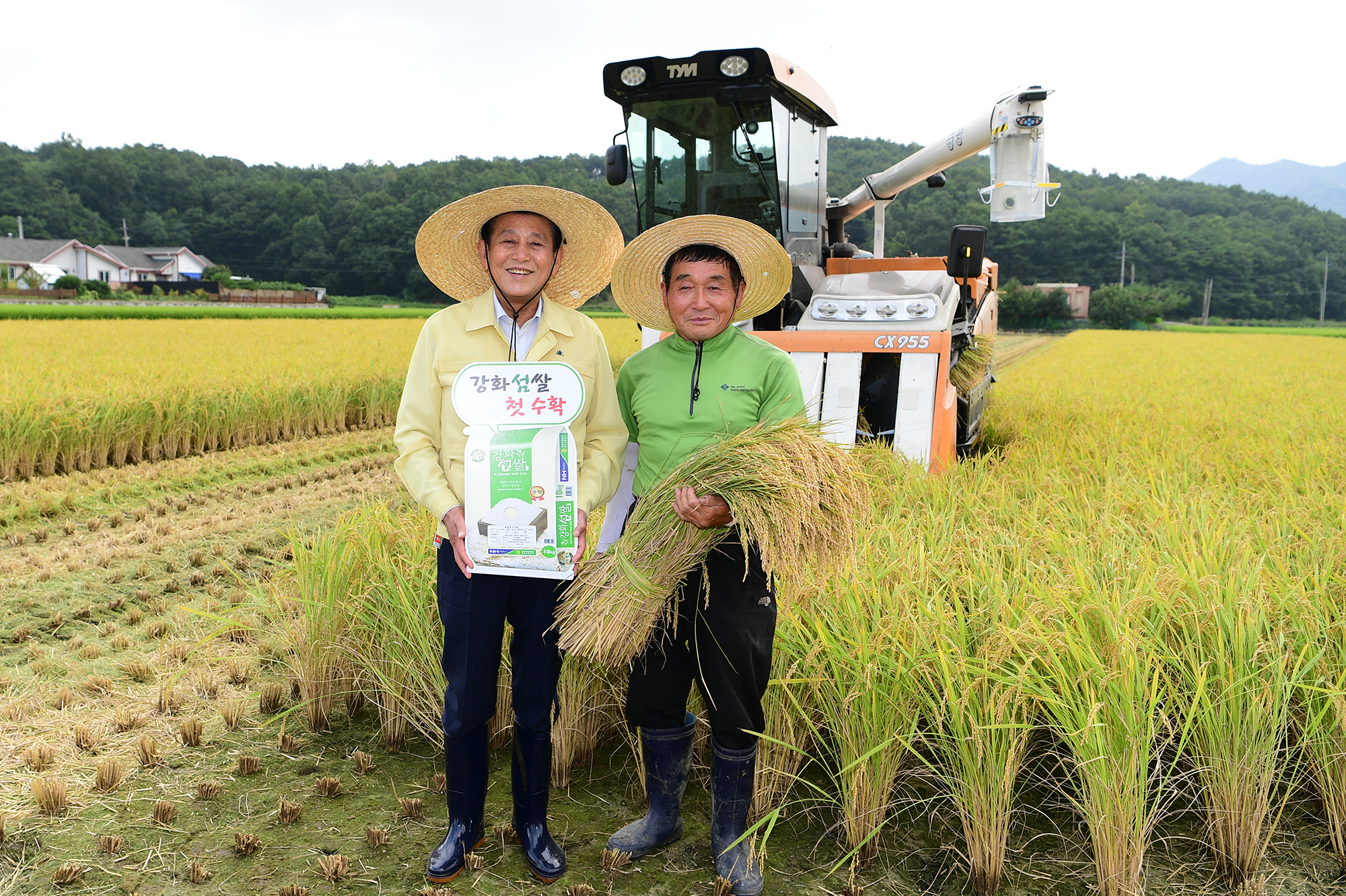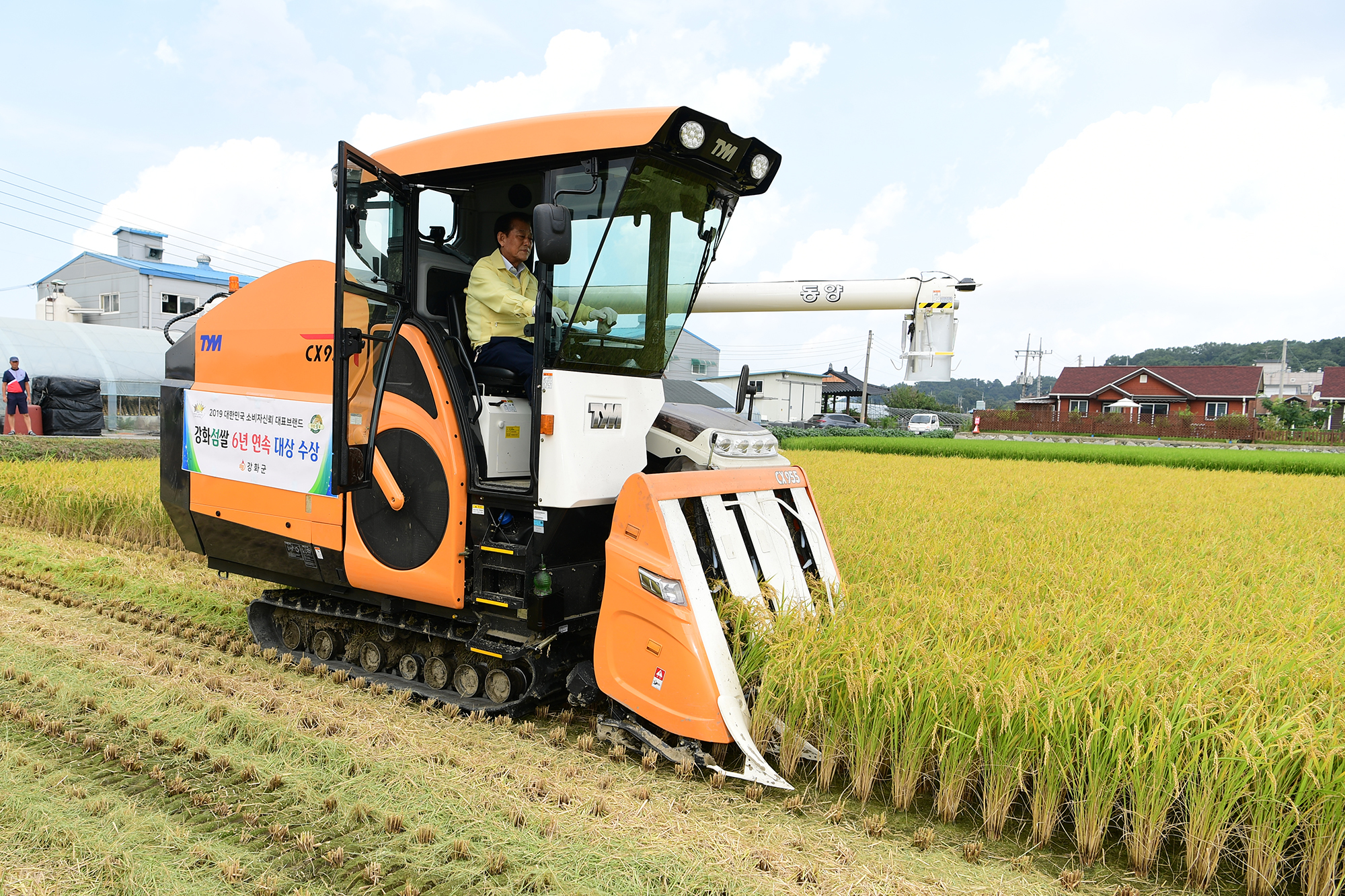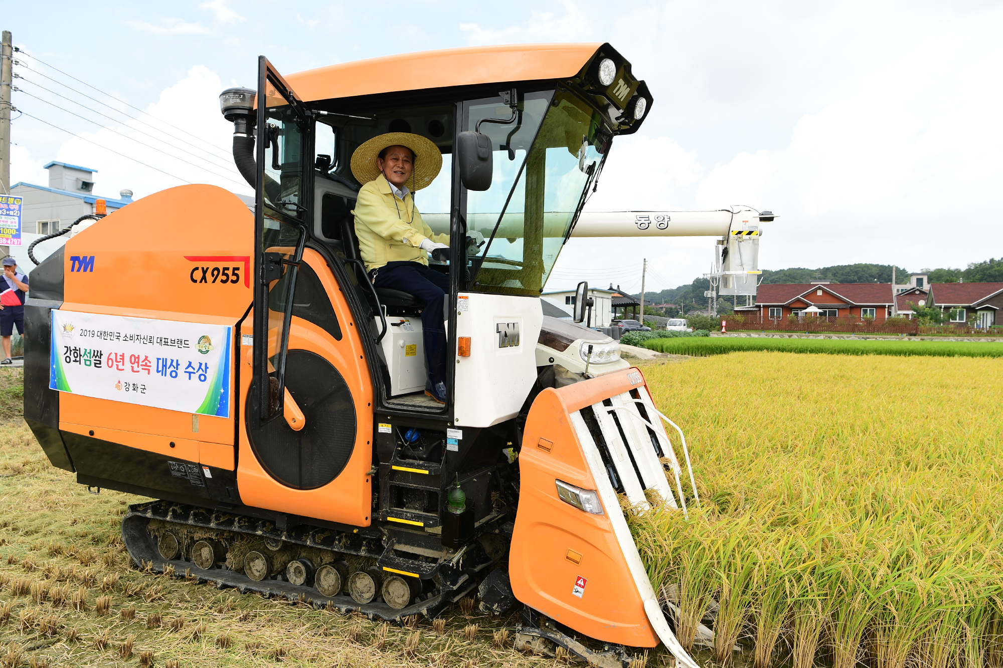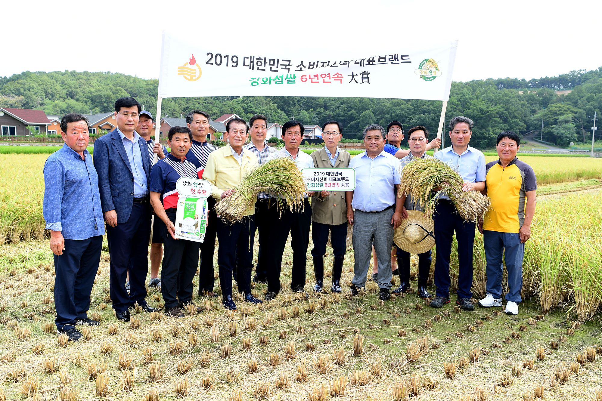 강화군(군수 유천호)은 지난 29일 강화읍 용정리 일원에서 6년 연속 「대한민국 소비자 신뢰 대표브랜드대상」쌀 부문 대상 수상의 기쁨을 함께하고, 풍년을 기원하기 위한 벼 베기 시연행사를 가졌다.