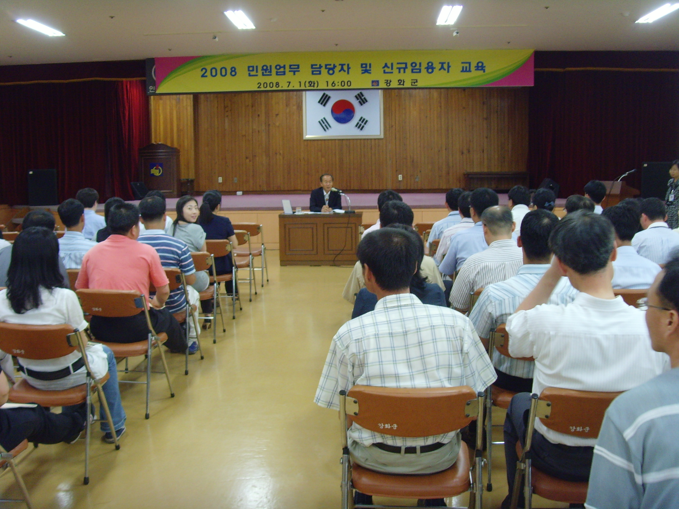 강화군은 민원업무의 정확한 법률 숙지로 업무처리능력 배양과 신속 ·정확한 민원처리로 고객 만족의 행정추진을 위해 민원실무담당자와 신규임용자 104명을 대상으로 지난 1일 군청 4층 회의실에서 민원 실무교육을 실시했다.