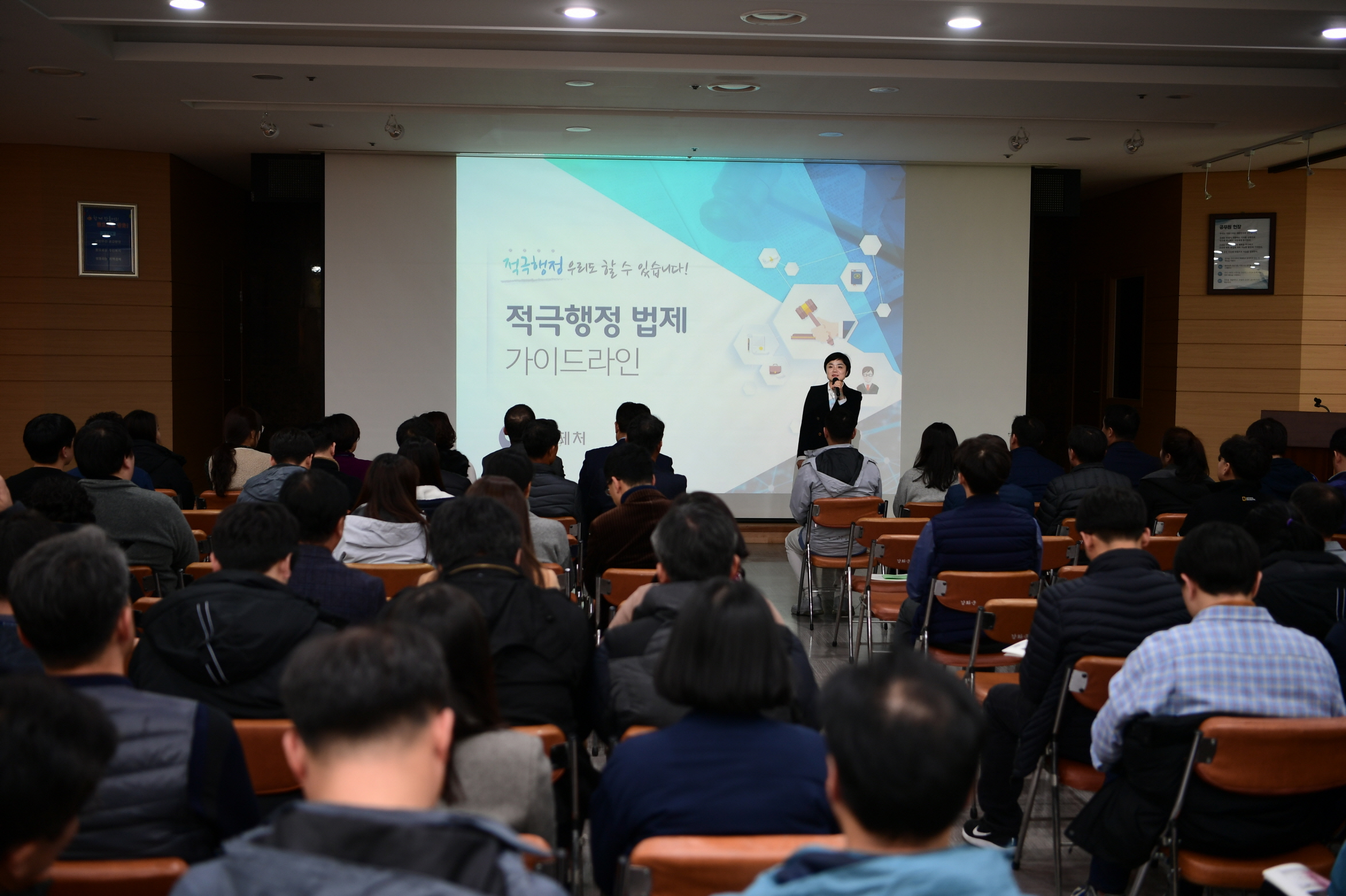 이날 교육은 적극행정 법제 및 사례에 대한 교육을 통해 공직자의 적극행정에 대한 거리감을 좁히고, 적극행정 공직문화의 정착 및 확산을 지원하기 위해 마련됐다.