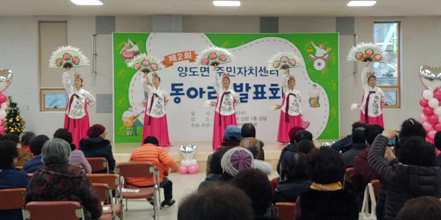 강화군 양도면 주민자치위원회(위원장 윤희열)는 지난 4일 주민자치센터에서 제2회 양도면 주민자치센터 동아리 발표회를 성황리에 개최했다.