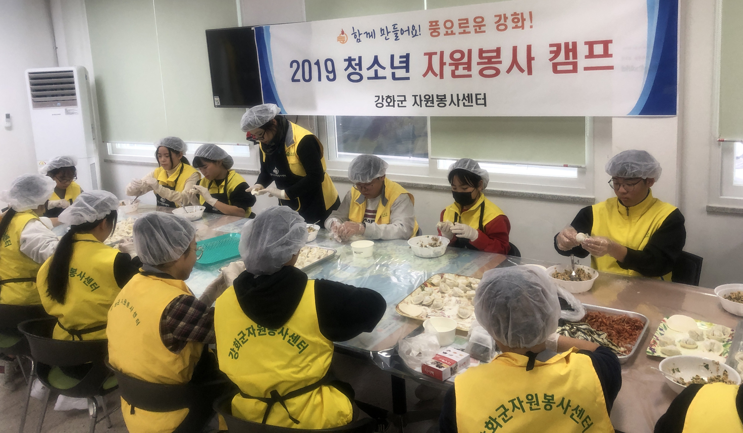 강화군자원봉사센터는 지난 7일 관내 청소년들과 함께 ‘2019 김장김치를 활용한 사랑의 만두 만들기 청소년 자원봉사 캠프’를 개최했다.