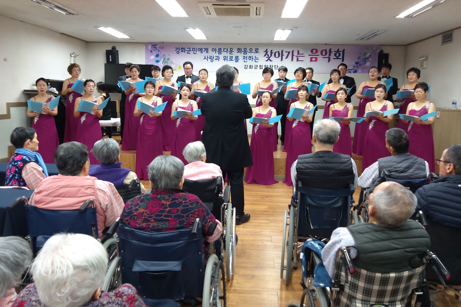 합창단이 찾은 곳은 불은면에 소재한 호세요양원으로 50여 명의 어르신들이 거주하고 있다. 단원들은 이날 ‘아름다운 나라’, ‘그대 내게 행복을 주는 사람’ 등 10곡을 합창했고, 위문품으로는 양말 150켤레를 전달하며 어르신들의 안부를 살피기도 했다.