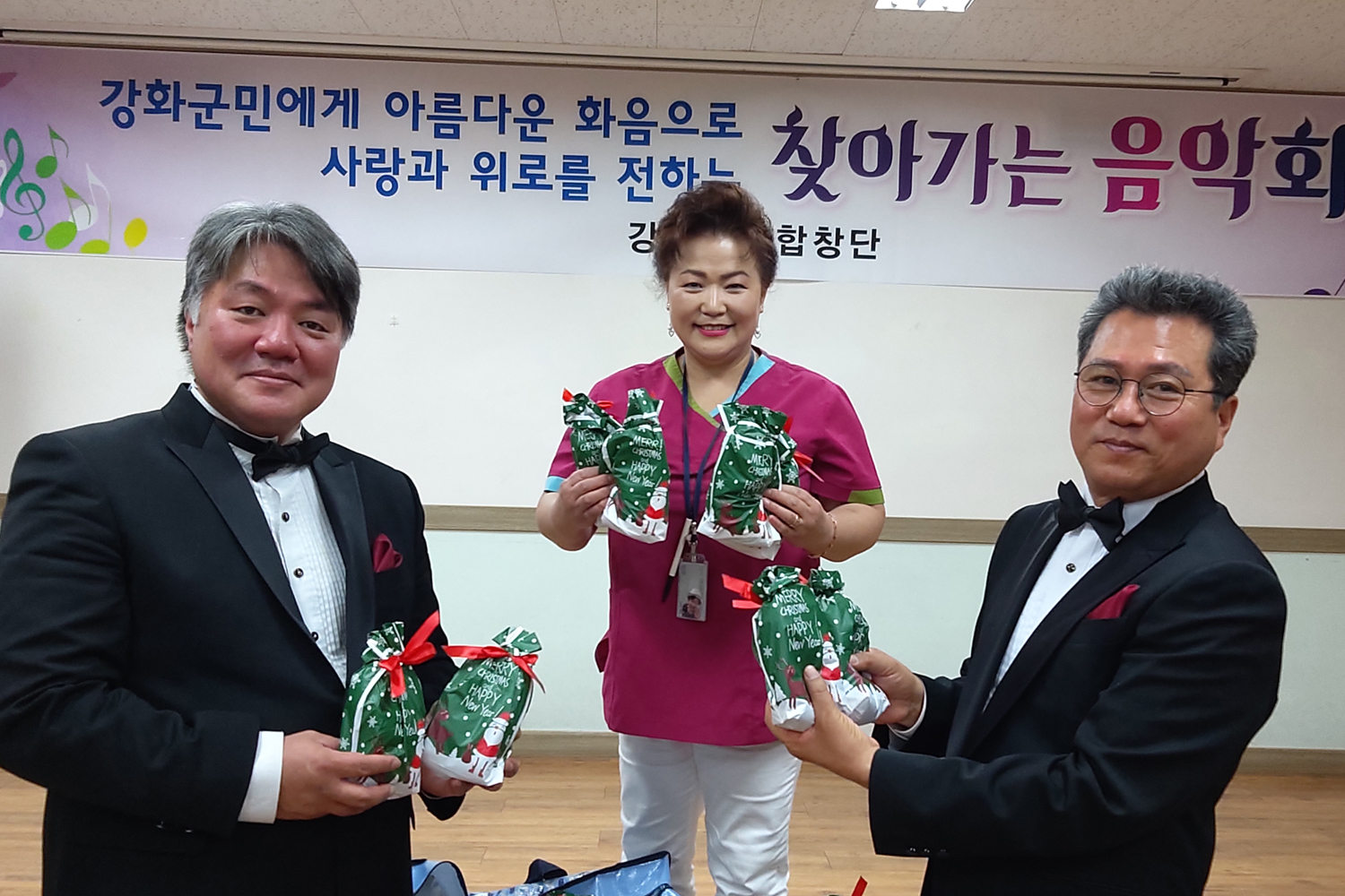 강화군립합창단이 연말을 맞아 지난 7일 관내 요양원을 찾아 사랑의 합창과 함께 위문품을 전달해 주변을 훈훈하게 했다.