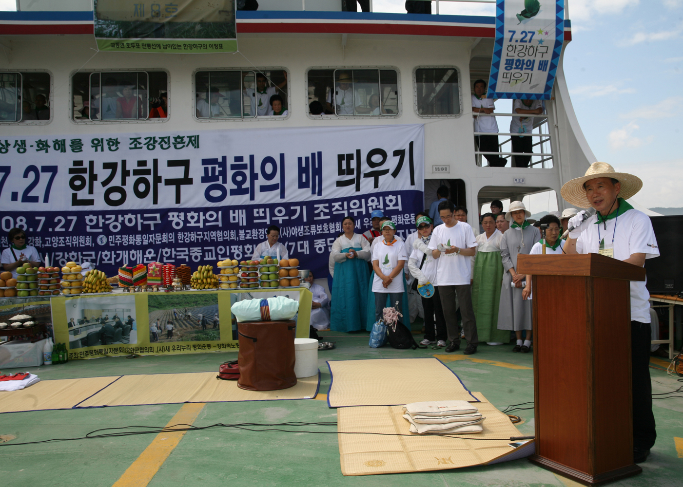 특히 2008 평화의 배 띄우기는 김금화선생(주요무형문화재 82-나호)과 한국종교인평화회의(KCRP)의 화해예식과 조강(조강祖江)진혼제로 공동 진행되었는데, 우리사회에 전쟁과 이념으로 인한 갈등문제를 해결하는데 종교인들이 화합의 정신으로 직접 나섰다는데 큰 의미가 있었다고 하겠다. 이에 앞서 한국종교인평화회의는 종전체제를 종식하고 한반도 평화체제의 정착을 위해 평화의 배 띄우기 조강진혼제에 공동 참여하기로 결정하고 종단들이 적극적으로 참여할 것을 권유했다. 이번 행사에는 KNCC의 김태현 목사, 한국천주교주교회의(CBCK) 송용민 신부와 윤일순 수녀, 원불교의 박세정, 이세정, 김세윤 교무가 참석했고, 한강하구지역에서 불교 석지관 스님, 강화향교 이서성 전교, 성공회 허용구 신부가 참가했다.