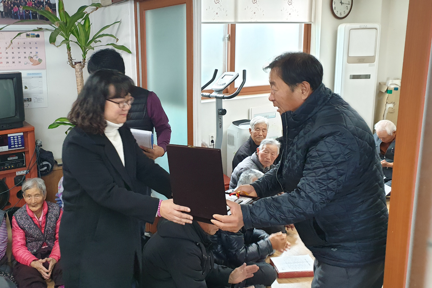 (사진 3매) 교동면 난정1리 이장이 감사패를 전달하고 있다