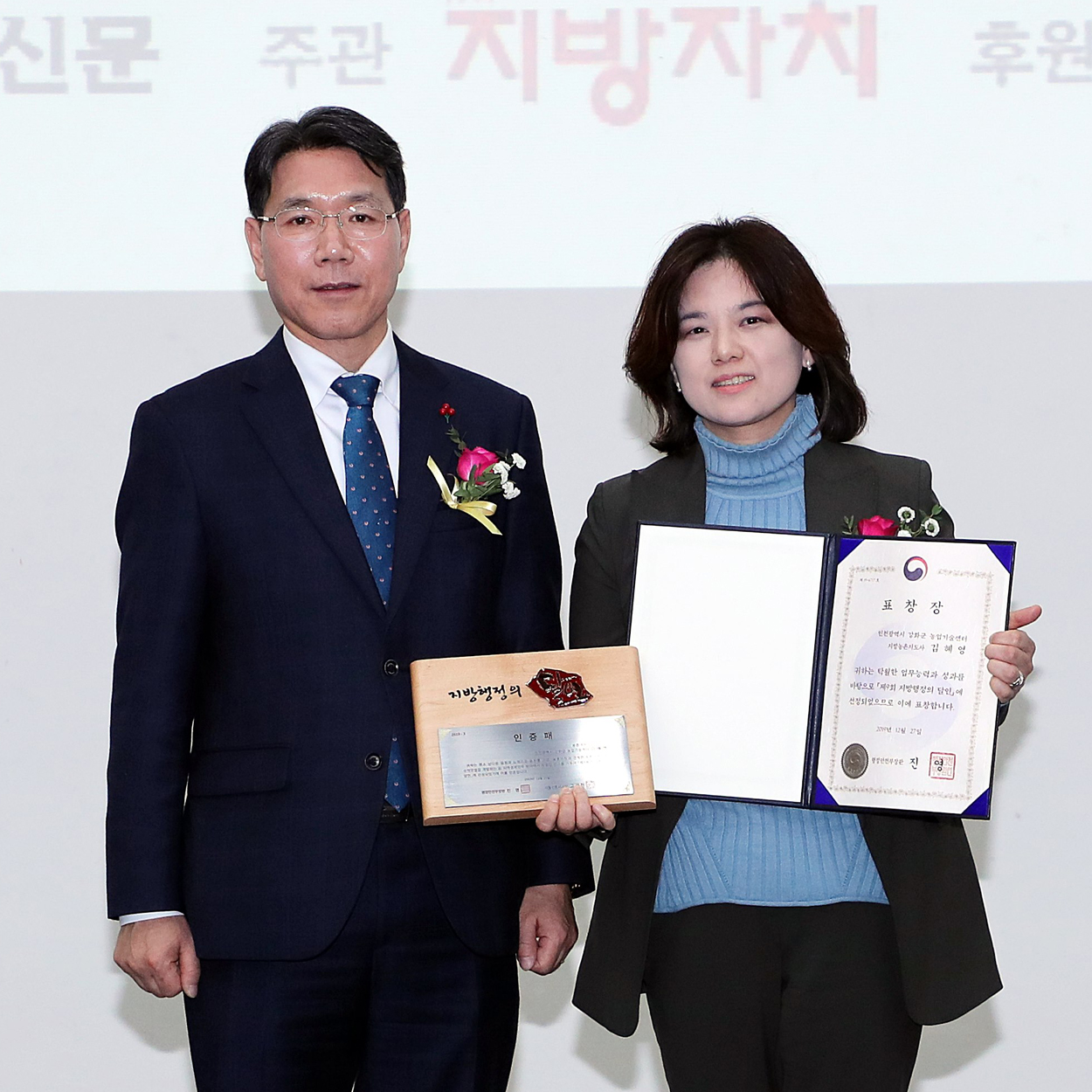 강화군농업기술센터 농촌진흥과 김혜영 팀장이 ‘제9회 지방행정의 달인’ 시상식에서 지역경제 분야 달인으로 선정되어 장관표창을 수상했다.