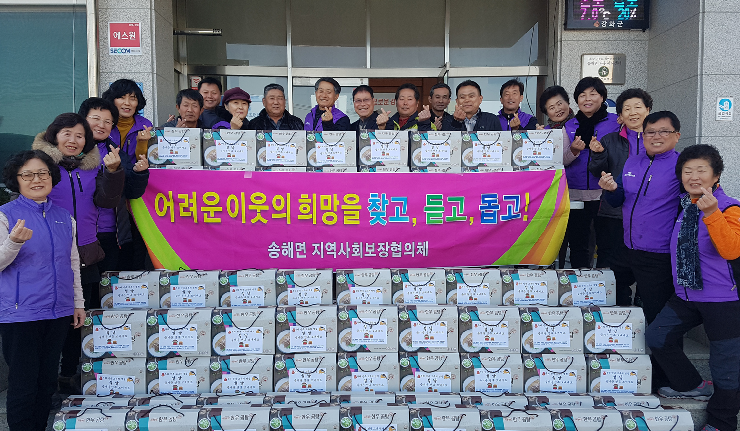 강화군 송해면 지역사회보장협의체(위원장 이군희·이효승)는 설 명절을 앞둔 22일 관내 저소득층 200가구에 포장용 곰탕을 전달했다.