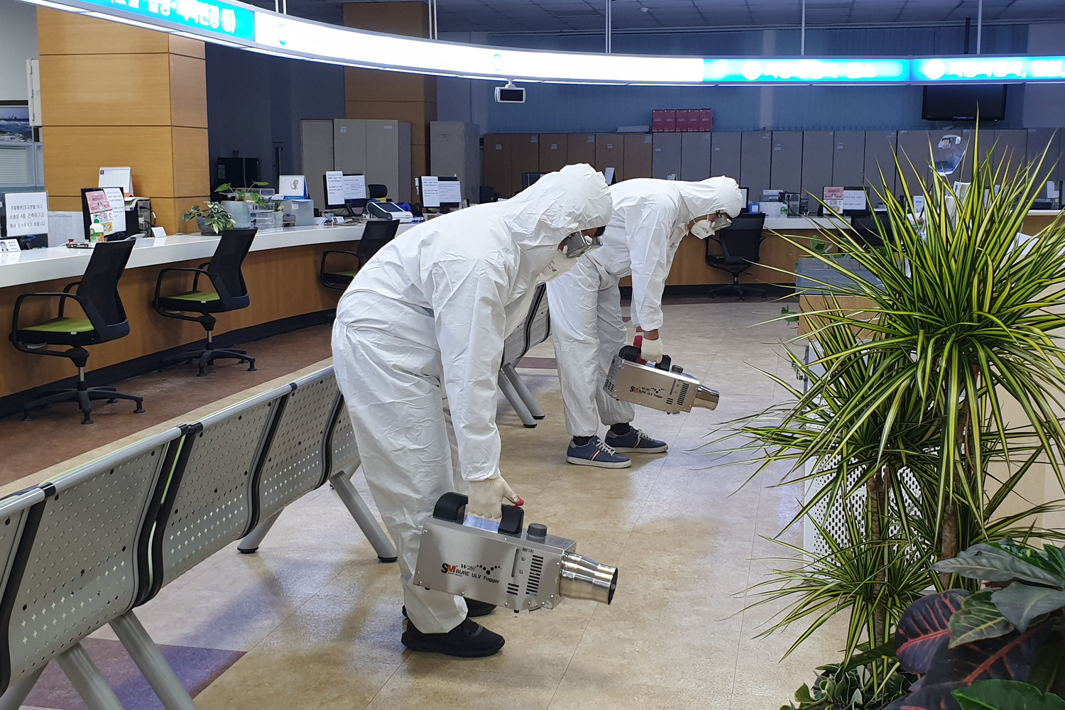 (사진 2매) 강화군청 전경 및 군청 민원실 소독 모습