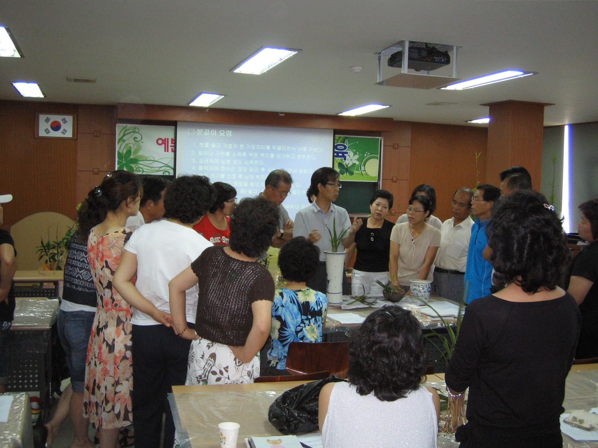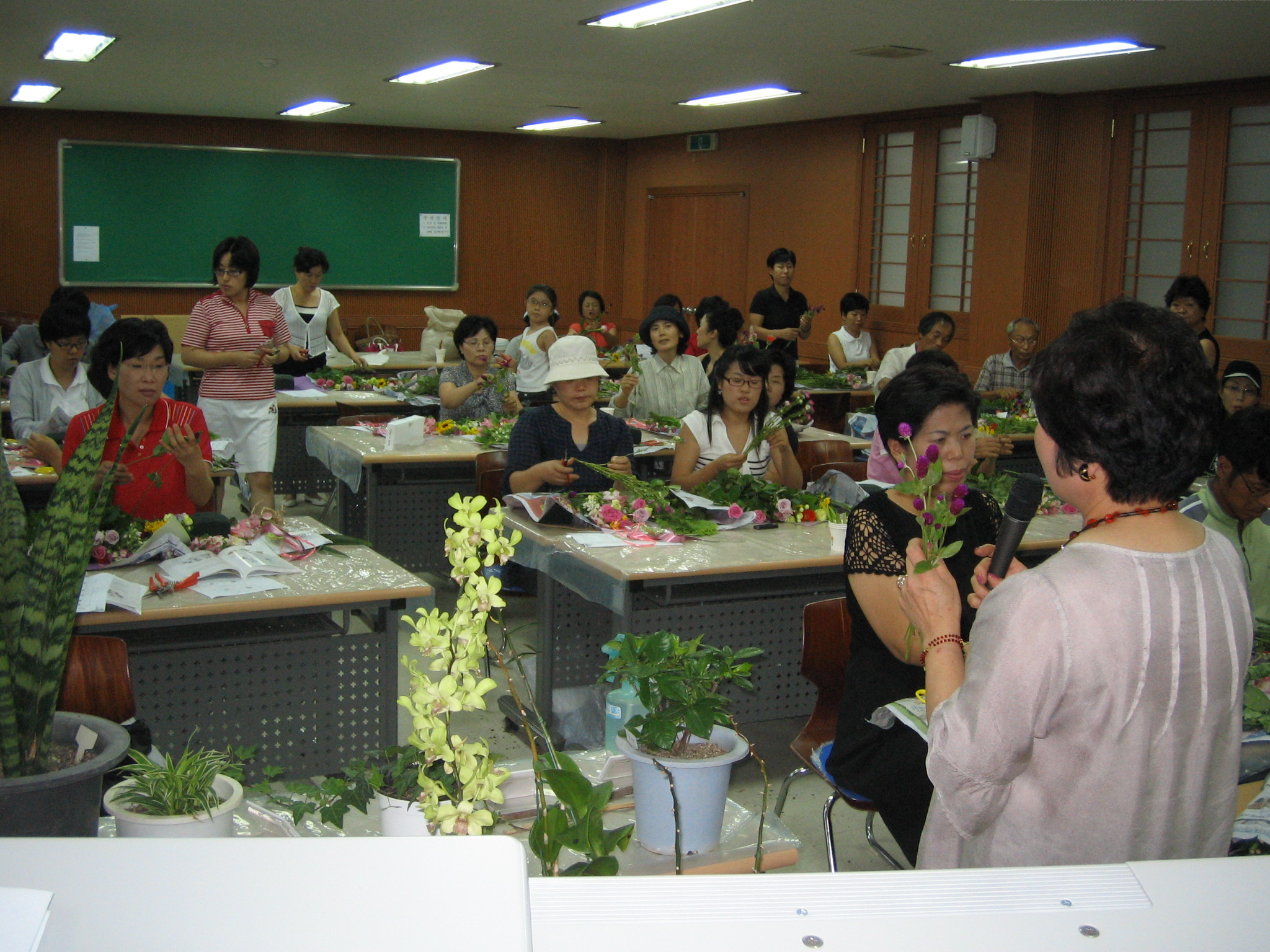 실내원예반 강좌는 총2기 83명의 교육생이 지난달 15일부터 4주간 2기로 나누어 실내공기정화식물기르기, 테라리움, 디시가든, 베란다조경, 허브기르기, 난기르는 요령 및 분갈이 실습, 꽃꽂이 등 다양한 내용으로 진행됐다.