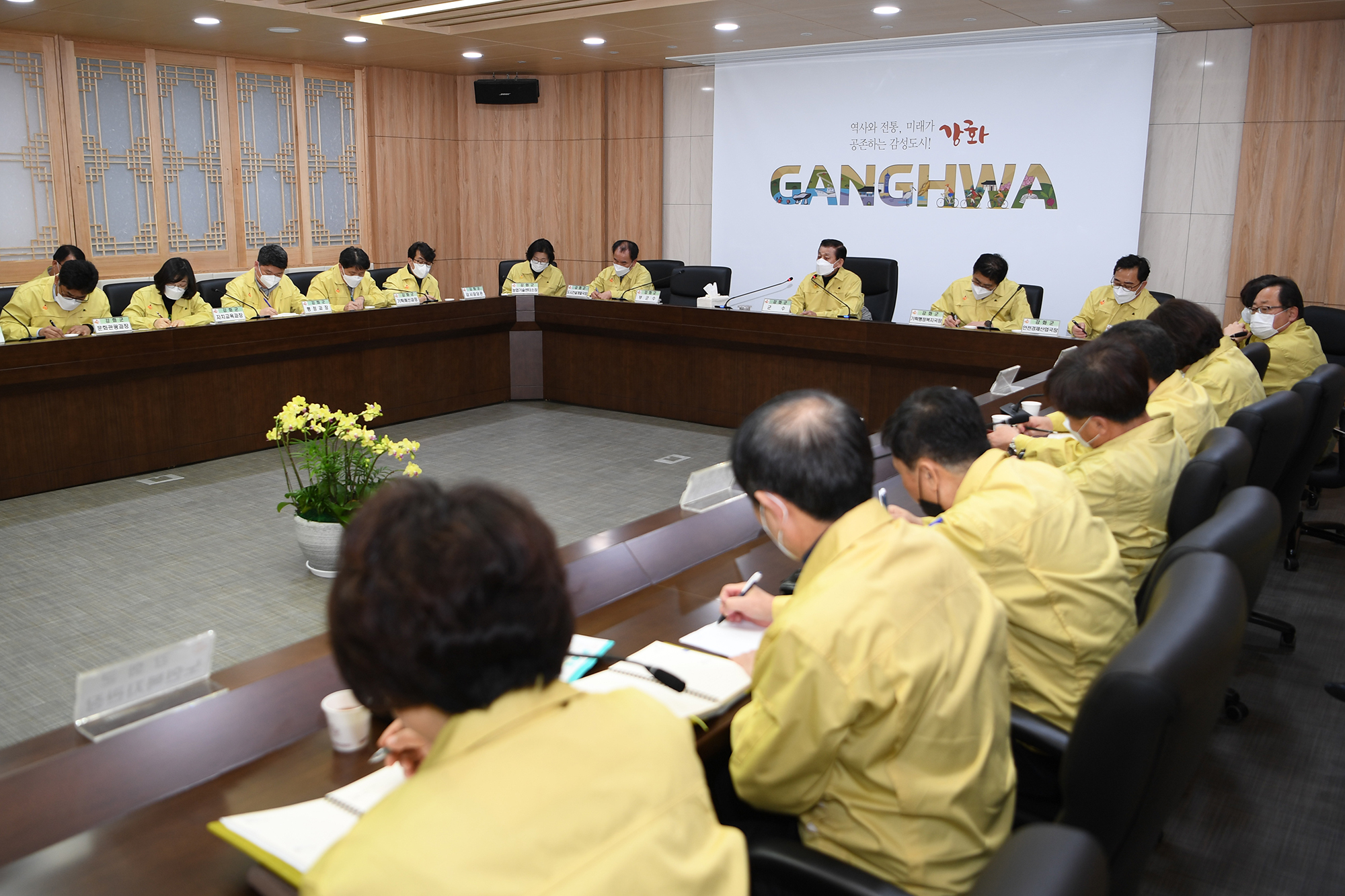 21일 강화군의 인접지역인 김포시에서도 코로나19 확진자가 발생했다는 보도에 따라 군은 지역유입 차단을 위해 같은 날 영상회의실에서 비상대책회의를 열고 각종 대응현황 및 대응책을 점검했다.