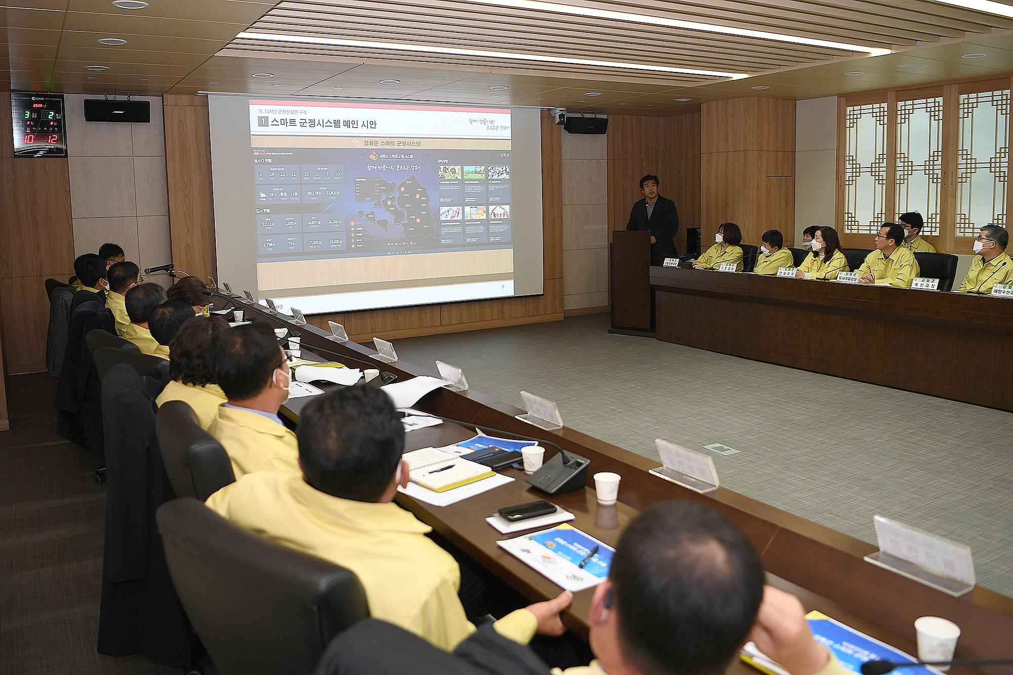 군수실에 마련되는 대형 디지털 현황판을 통해 ▲군정지표, ▲주요 추진 사업현황, ▲재정, ▲민원, ▲재난(화재, 교통사고 등), ▲환경(미세먼지, 기상 등), ▲물가 정보 등을 한눈에 볼 수 있고, 문제가 발생하면 즉시 파악해 신속하게 정책 결정을 할 수 있게 된다. 또한, 주민의 불편 및 요구 사항을 빠르게 파악해 군민 맞춤형 정책 개발에 일조할 것으로 기대된다.