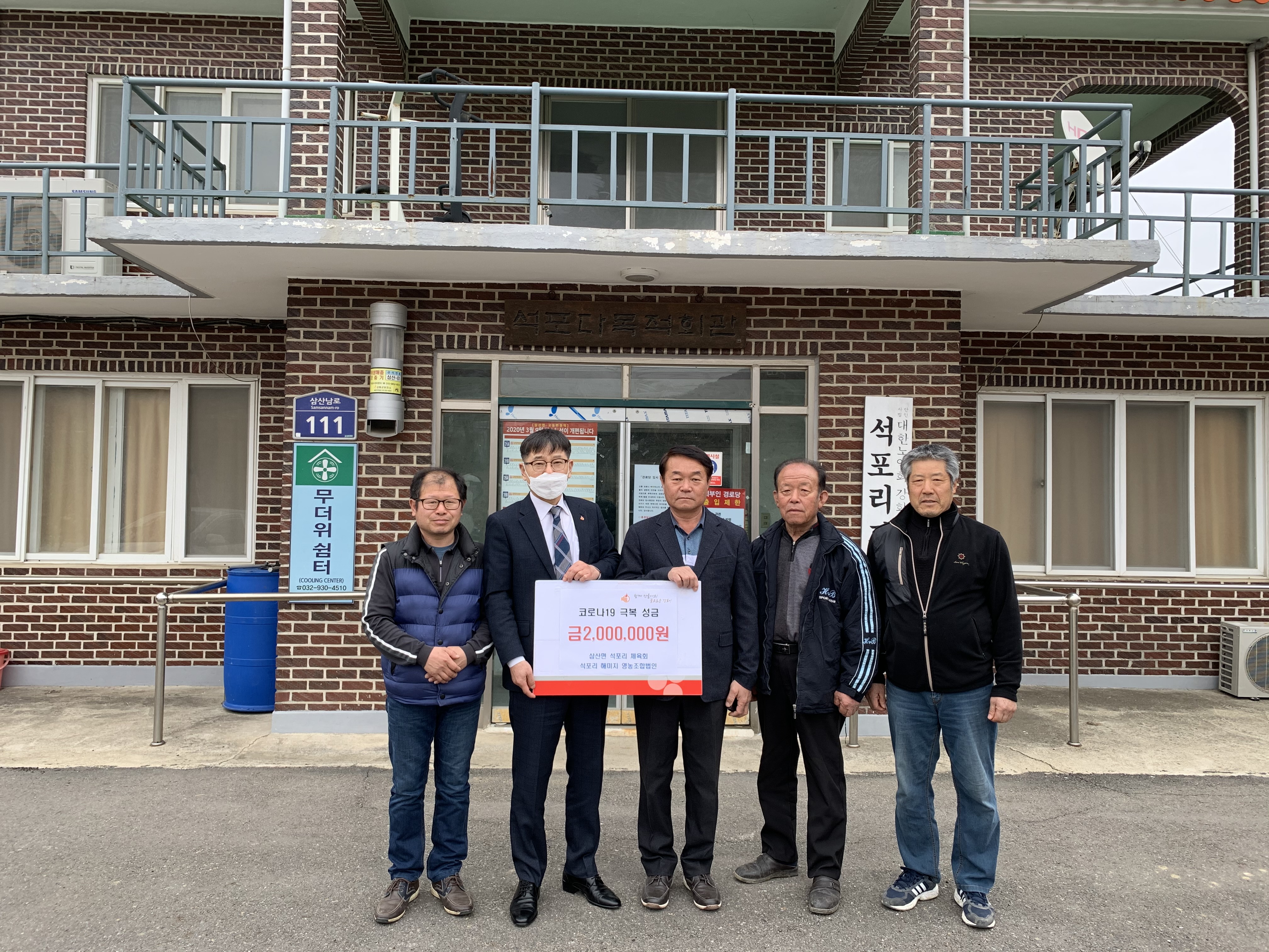 삼산면 이장단(이장단장 이규인)은 지난 9일 코로나19 극복을 위해 성금 100만 원을 기탁한데 이어, 석포리체육회에서 100만 원과 석모도 해미지 영농조합에서 200만 원을 기탁했다.