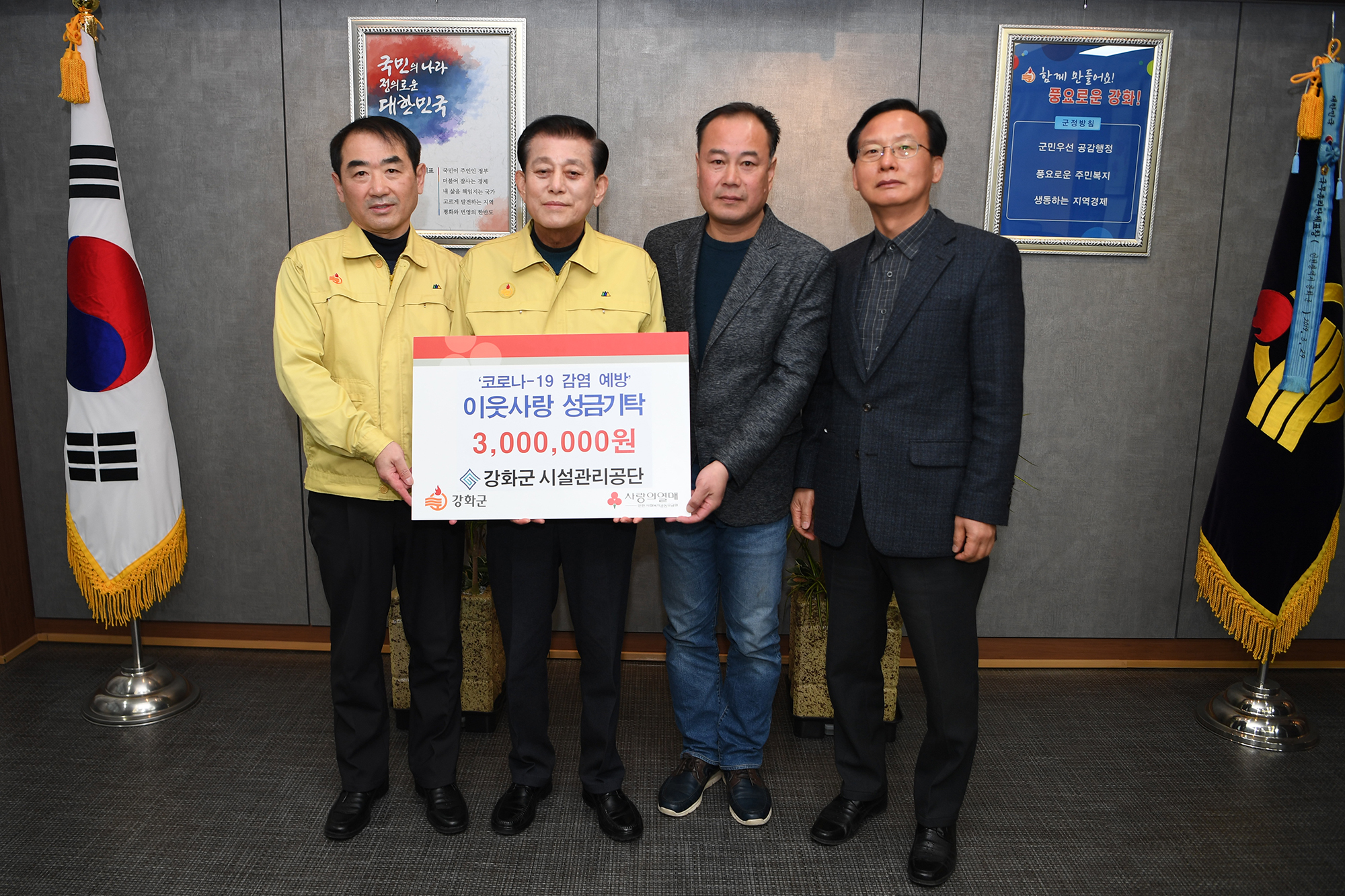 한기량 이사장은 “코로나19로 인해 어려움을 겪고 있는 군민들께 작은 힘이라도 보태고자 한다”며 “코로나19가 지역사회에 전파되지 않도록 최선의 노력을 다하겠다”고 밝혔다.