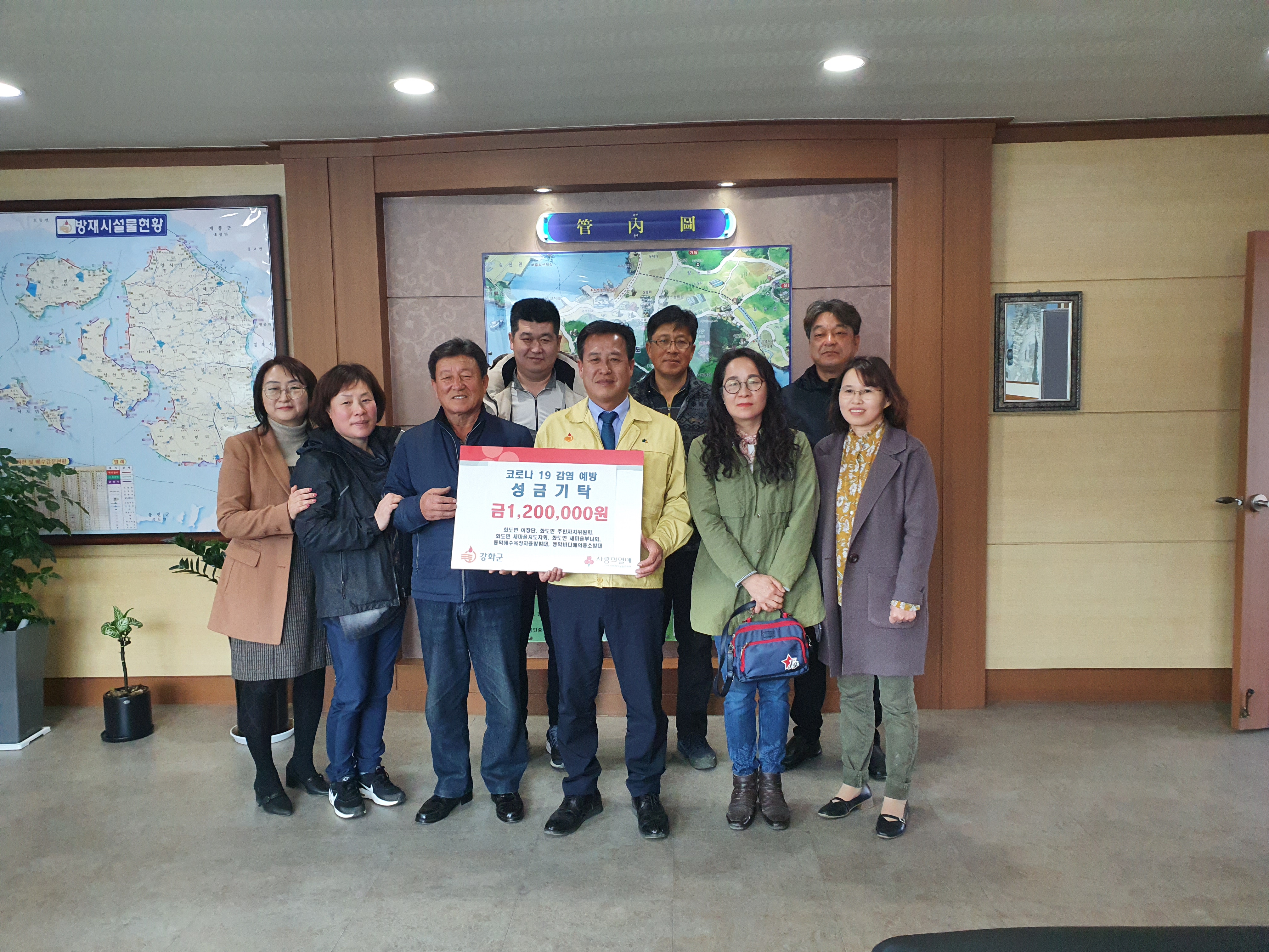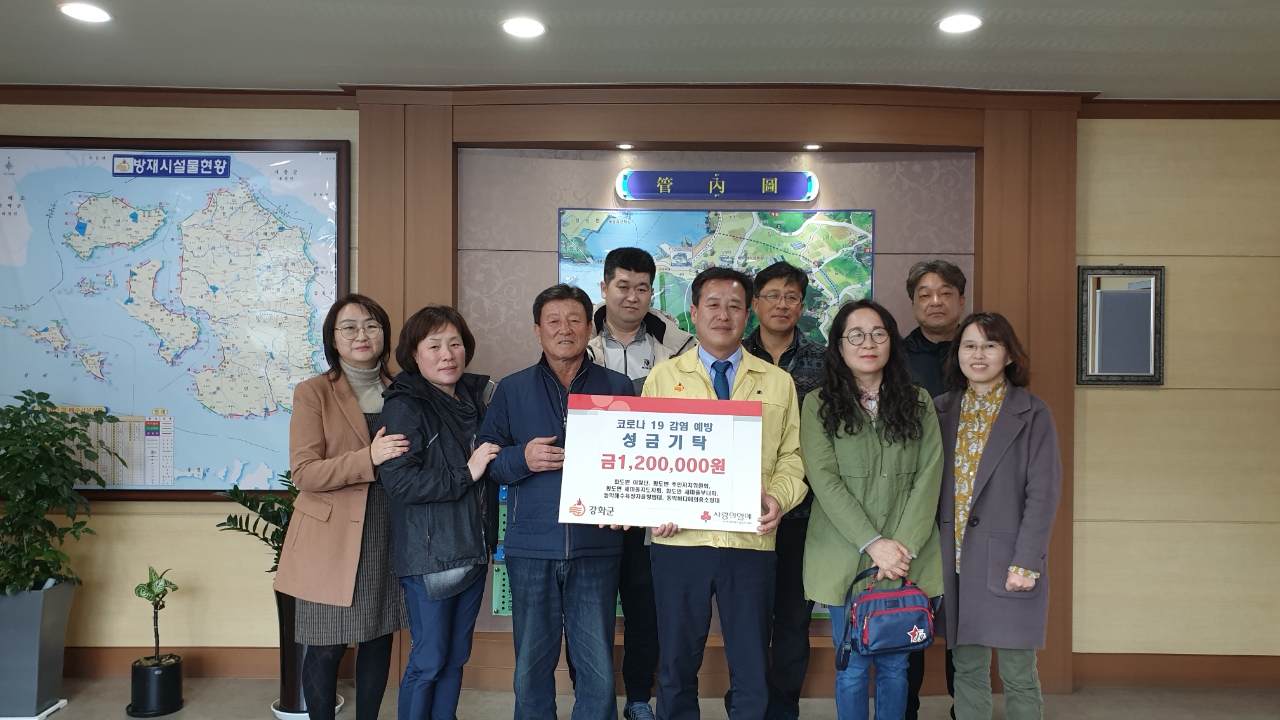 유교상 이장단장은 “이번 성금이 코로나19 확산 방지에 조금이나마 보탬이 되고자 단체장들과 정성을 모았다”며 “코로나19로 모든 주민들이 어려움을 겪고 있는 상황에서 성금 모금에 동참한 각 리 이장 및 화도면 단체들에게 감사하다”고 말했다.