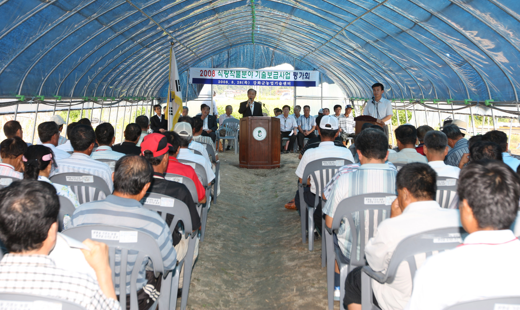 이날 평가회에서는 농업 및 기술보급사업 설명회 및 축산액비 적정사용량 시험포인 돈분액비실증포 평가 그리고 2008년도에 추진한 벼농사 작황, 병해충발생상황 및 식량작물분야 시범사업 평가가 있었다.