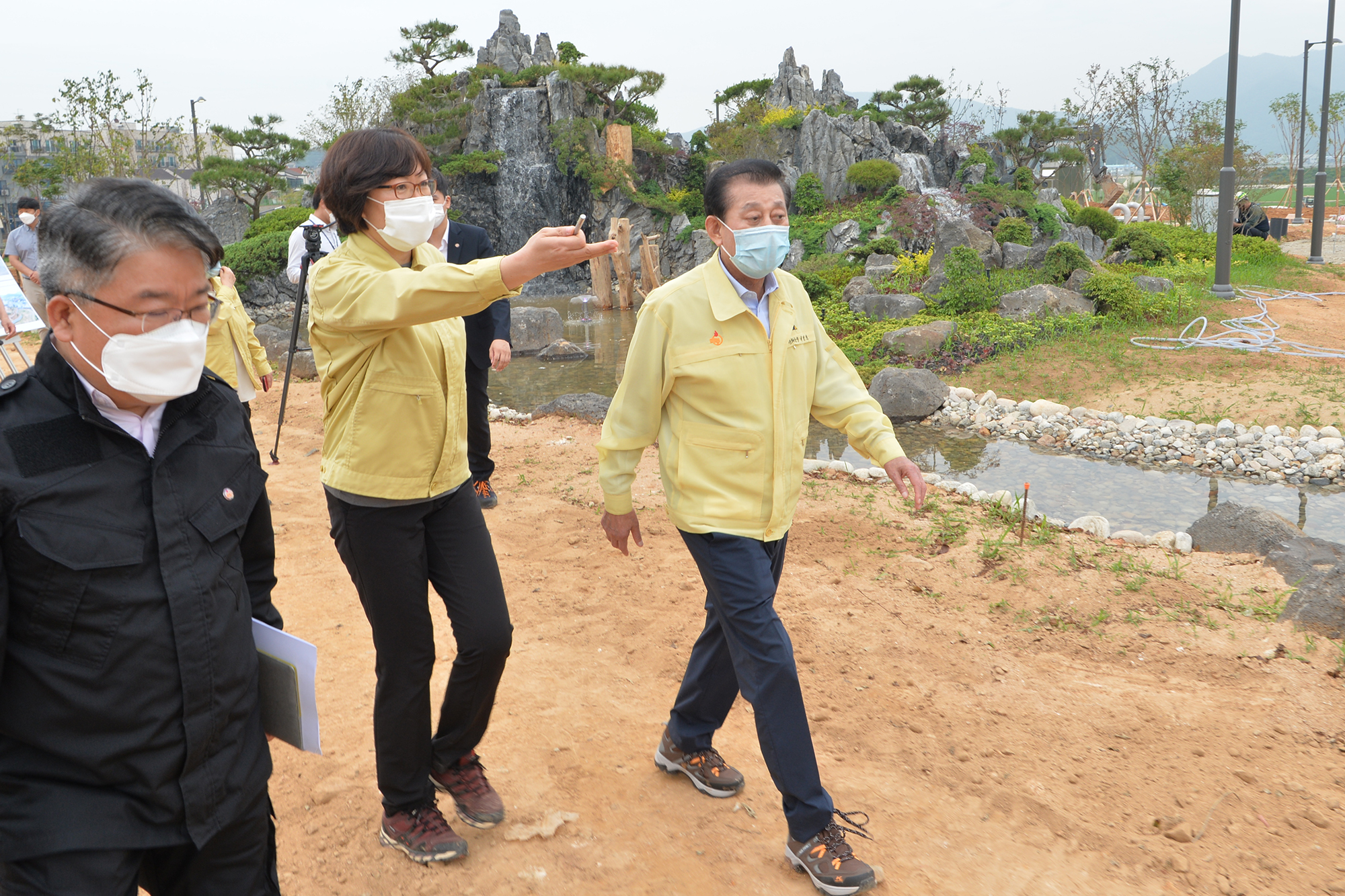 강화읍 갑곳리 441-1번지 일대 12,154㎡ 규모로 조성되는 갑룡공원에는 사업비 78억 원을 투입해 문화광장, 야외스탠드, 숲속정원, 물놀이 놀이터, 산수원폭포, 다목적운동공간, 산책로 등 주요시설이 들어서게 된다. 현재 공정률은 80%로 오는 7월 준공을 목표로 마감 공사가 한창이다.
