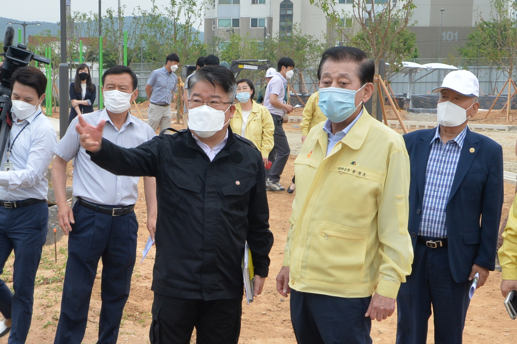 지난 12일 사업현장을 찾은 유천호 군수는 안전경제산업국장, 공사관계자 등과 함께 공사 진행상황을 점검하고, 준공 후 시설물 유지‧관리 방안 등을 점검했다.