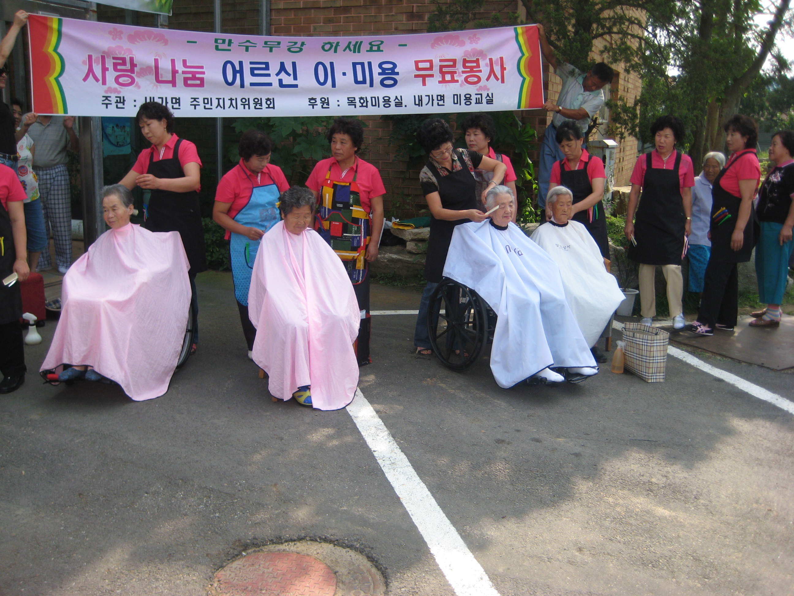 내가면 주민자치센터 미용교실에서는 추석을 맞아 지난 5일 불은면 소재 삼성 너싱홈 노인 요양원을 방문 이·미용과 목욕 봉사를 실시했다.