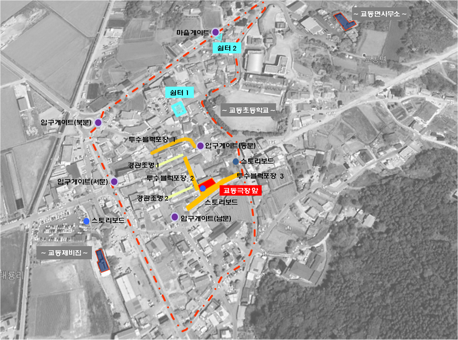군은 대룡시장에 사업비 19억(국비 80%, 지방비 20%)을 투입해 지난해 골목길 보도블록 포장, 마을게이트 및 시장게이트 조성 등을 완료했다. 올해는 마을게이트와 시장게이트 경관 조명 설치, 스토리 보드 설치, 쉼터 조성, 골목길 보도블록 정비 등 주민들이 제안한 사업을 지난 6월 착공해 오는 12월 준공할 계획이다.