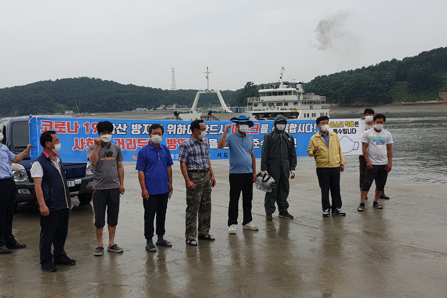 이날 주문도리 선착장에서 코로나19 감염예방을 위한 여객대합실 방역소독과 서도면을 찾은 100여 명의 피서객들을 만나 사회적 거리두기 준수와 물놀이 등 안전수칙 준수 협조를 당부하고, 선착장 주변 도로변 쓰레기와 해안가쓰레기를 수거했다.