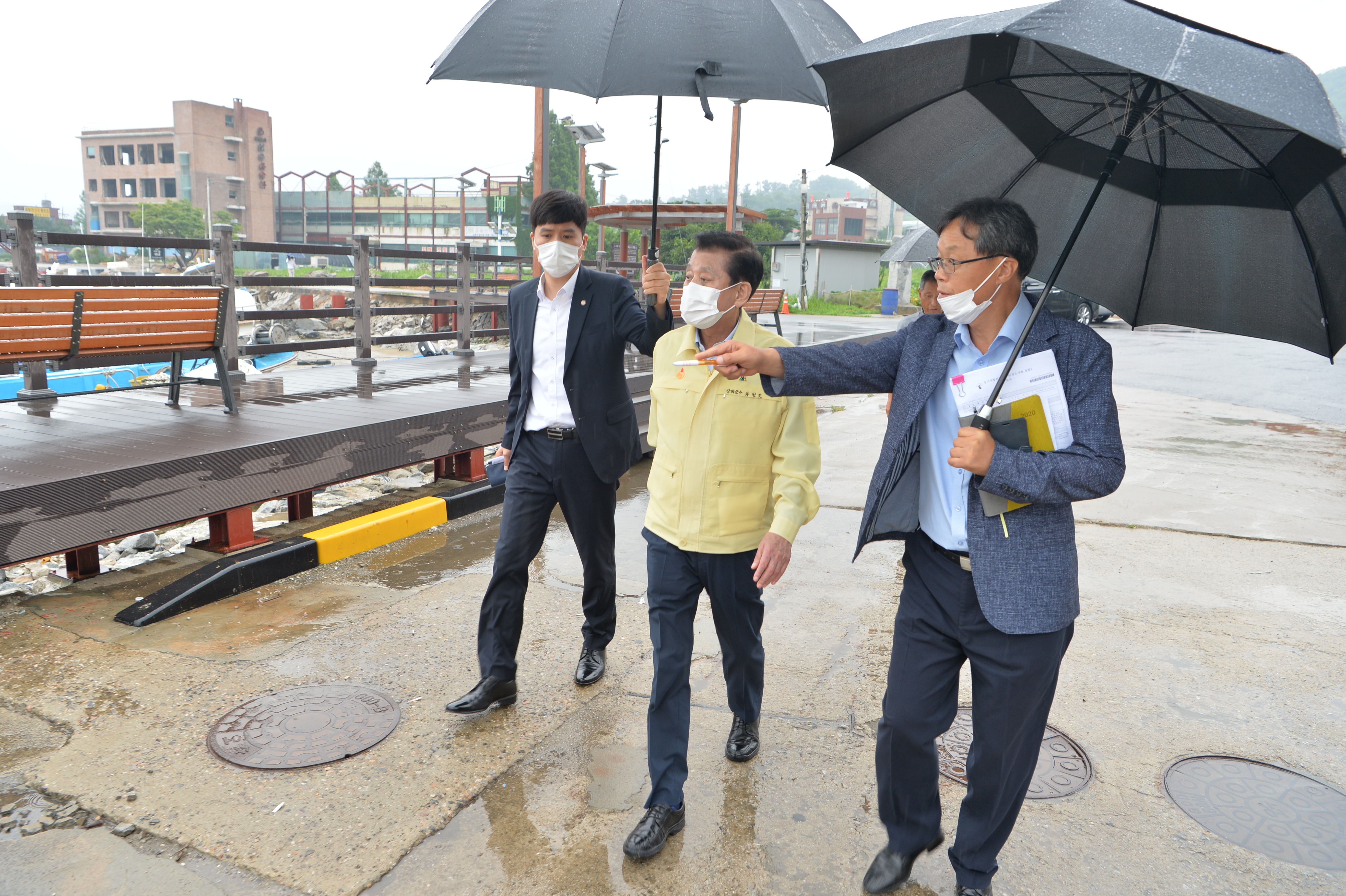 지난 27일 후포항 사업현장을 찾은 유천호 군수는 주요 사업진행 상황을 점검하고, 이미 공사가 완료된 어항기반시설과 후포항 진입로 등 시설물의 유지‧관리 방안을 점검했다.