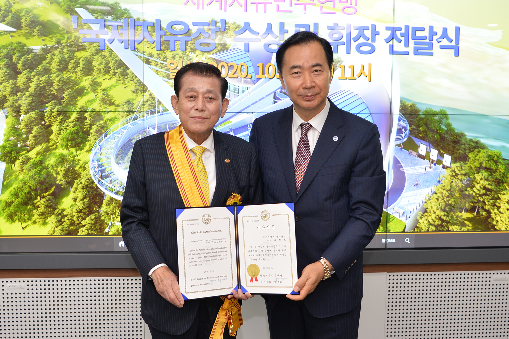 유천호 강화군수가 16일 세계자유민주연맹(World League for Freedom & Democracy) 포장인 ‘자유장(Awards of Freedom)’을 수상했다.