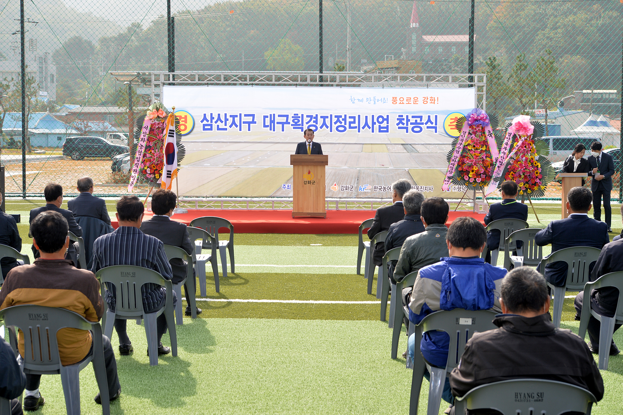 강화군(군수 유천호)과 한국농어촌공사(지사장 최재철)는 22일 지역주민 등 100여 명이 참석한 가운데 삼산지구 대구획경지정리사업 착공식을 개최했다.