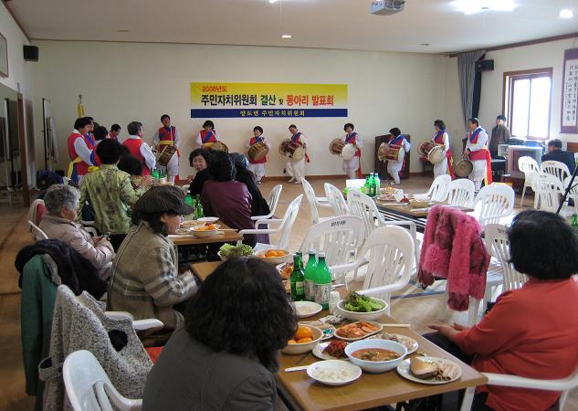 - 한해를 결산하고,주민들에게 장기자랑도 뽐내 -