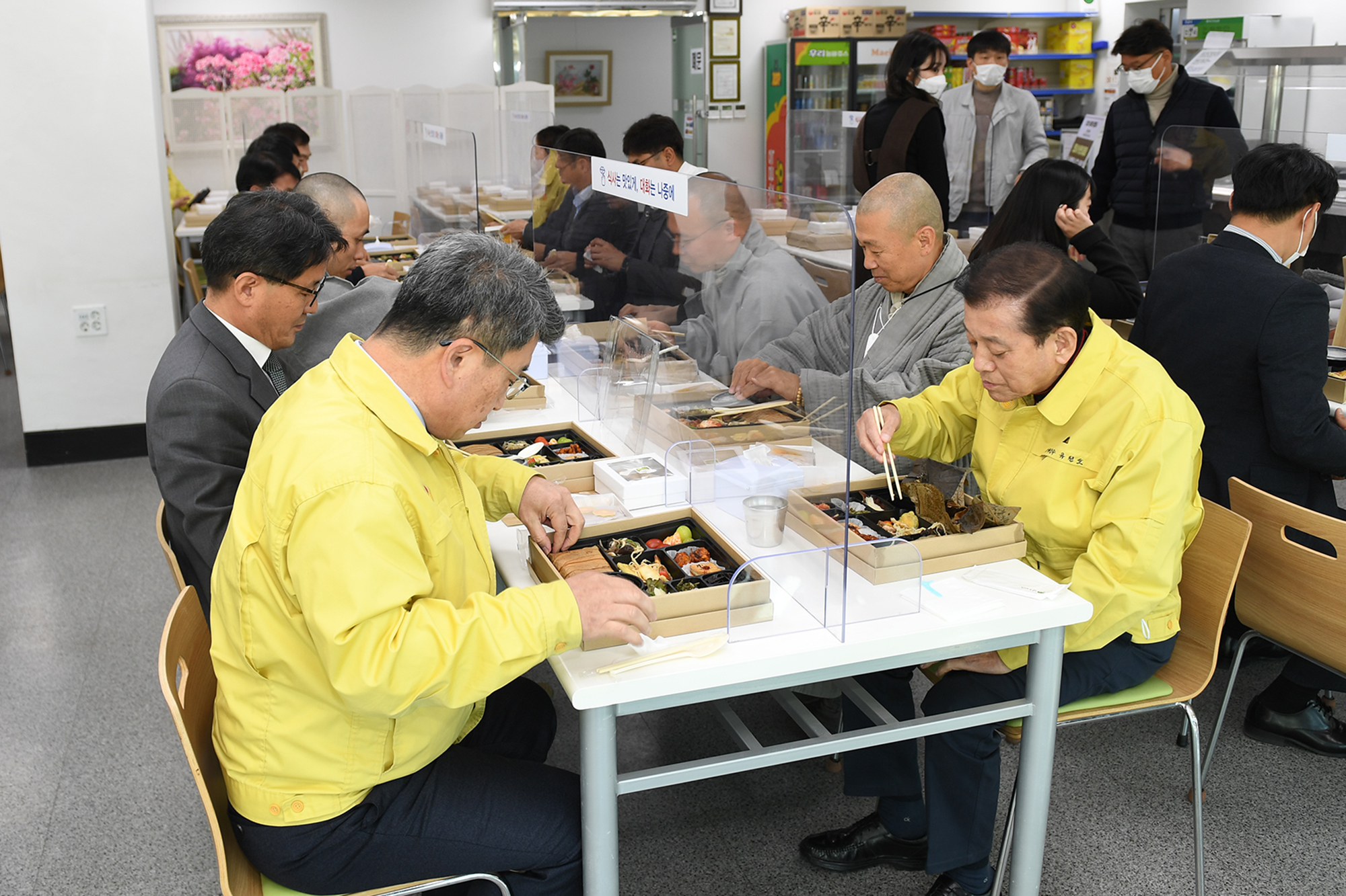 여암 주지스님은 “예로부터 사찰에서는 음식 먹는 것을 공양이라고 했는데 이는 음식에 깃든 많은 이들의 노고와 정성을 생각하며 수행정진을 다짐하는 거룩한 의식이자 지위의 높고 낮음을 막론하고 모든 대중이 차별 없이 똑같이 나누어 먹는 평등의식이 담겨있다”며 “공동체를 위해 헌신하는 분들께 공양하는 마음으로 도시락을 준비했다”고 말했다.