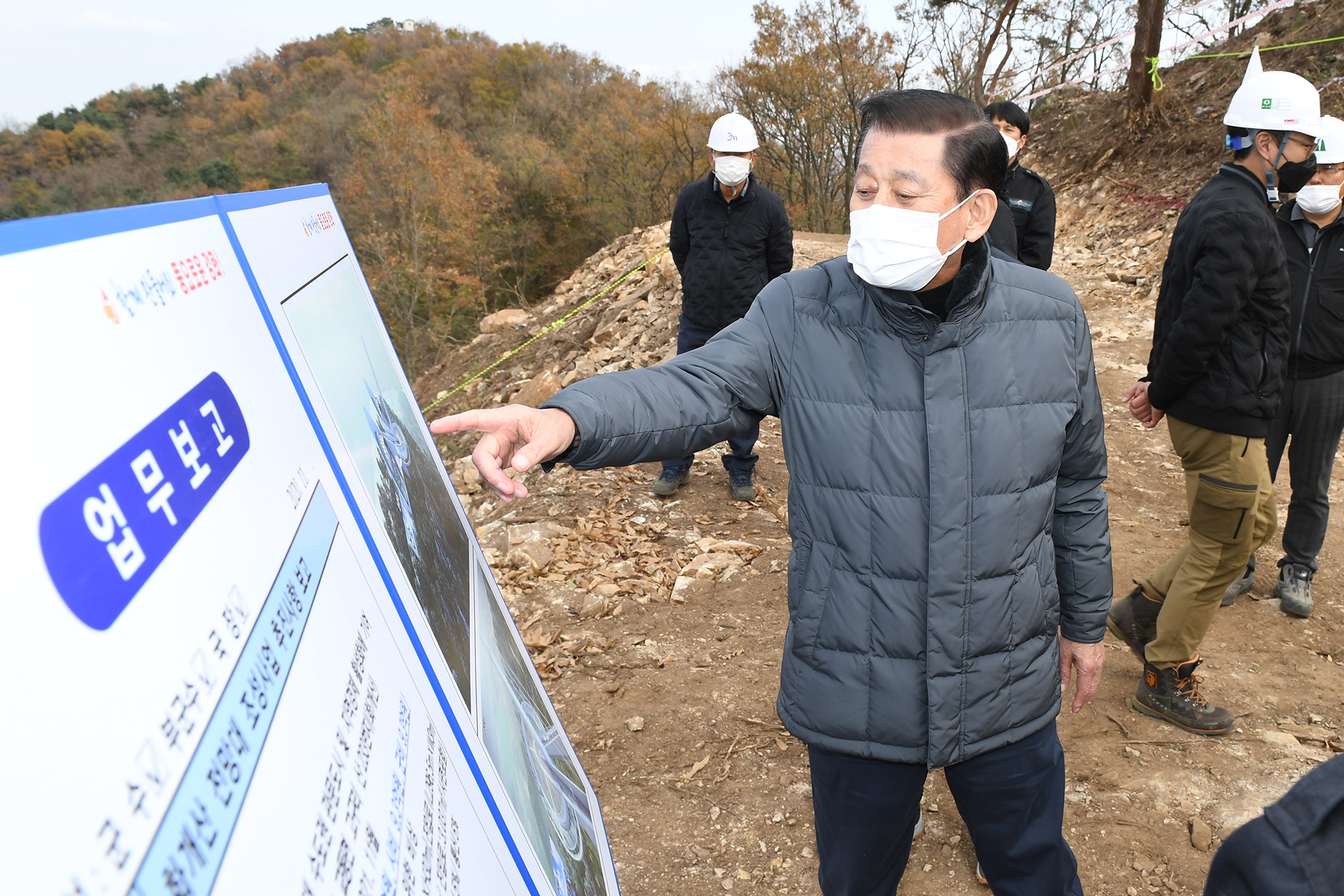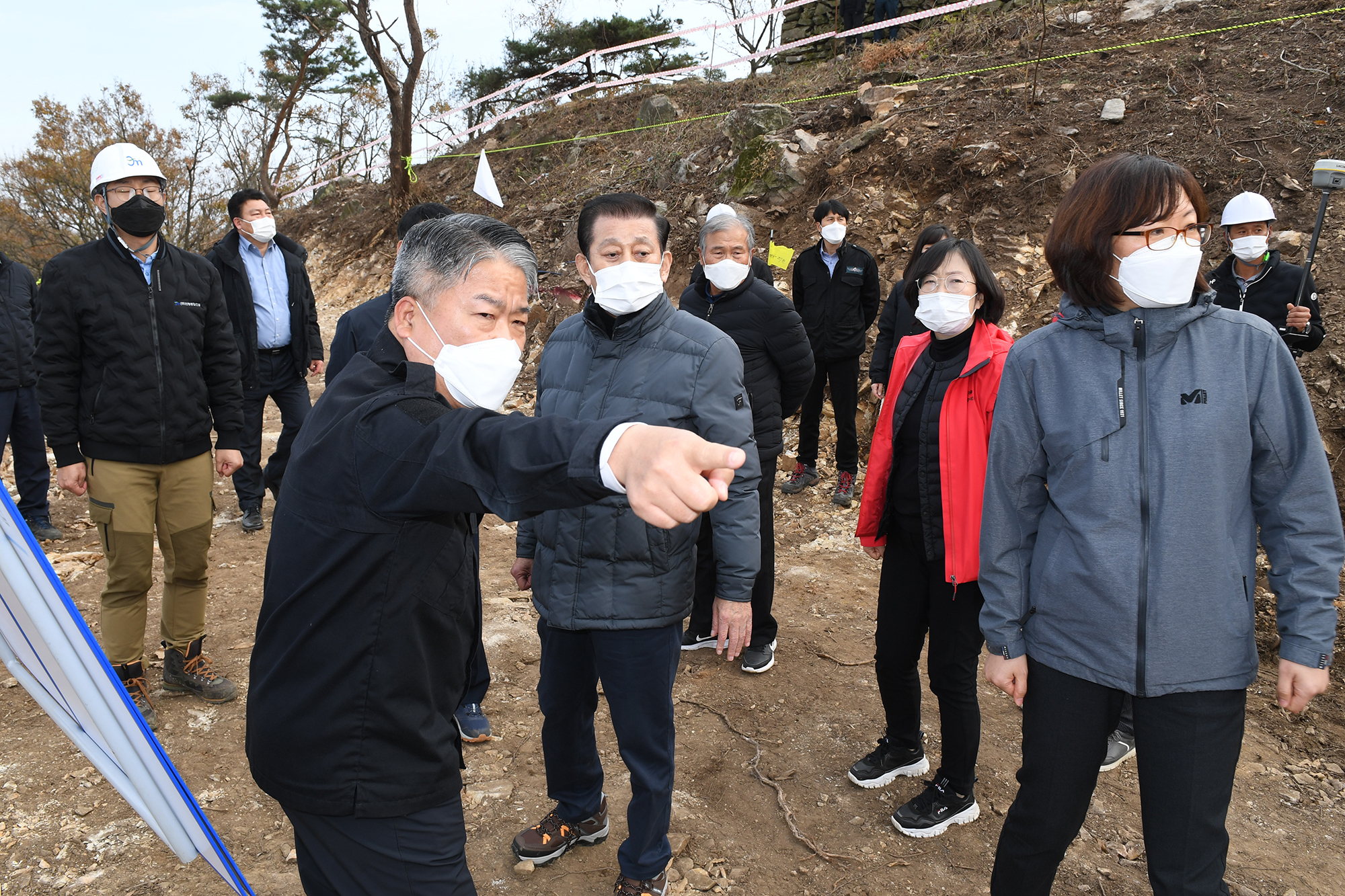 이날 사업현장에는 교동면 기관단체장, 군청 도시건설개발국장, 산림공원과장 등 30여 명이 현장을 찾았으며, 화개산 정상까지 도로가 연결되고 화개정원에 연못이 조성되는 등 빠르게 진행되고 있는 화개정원과 화개산전망대의 모습에 기대감을 들어냈다.