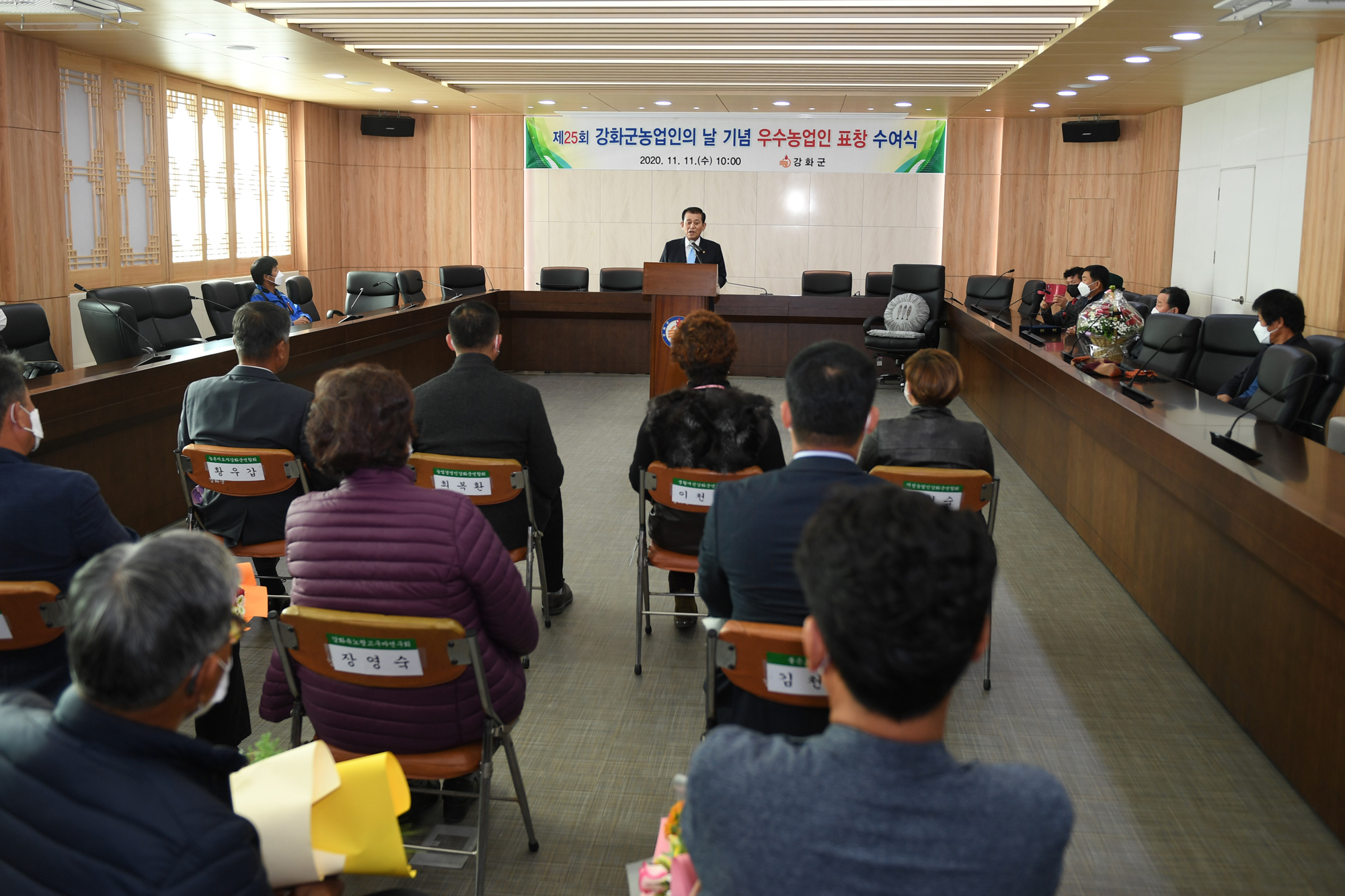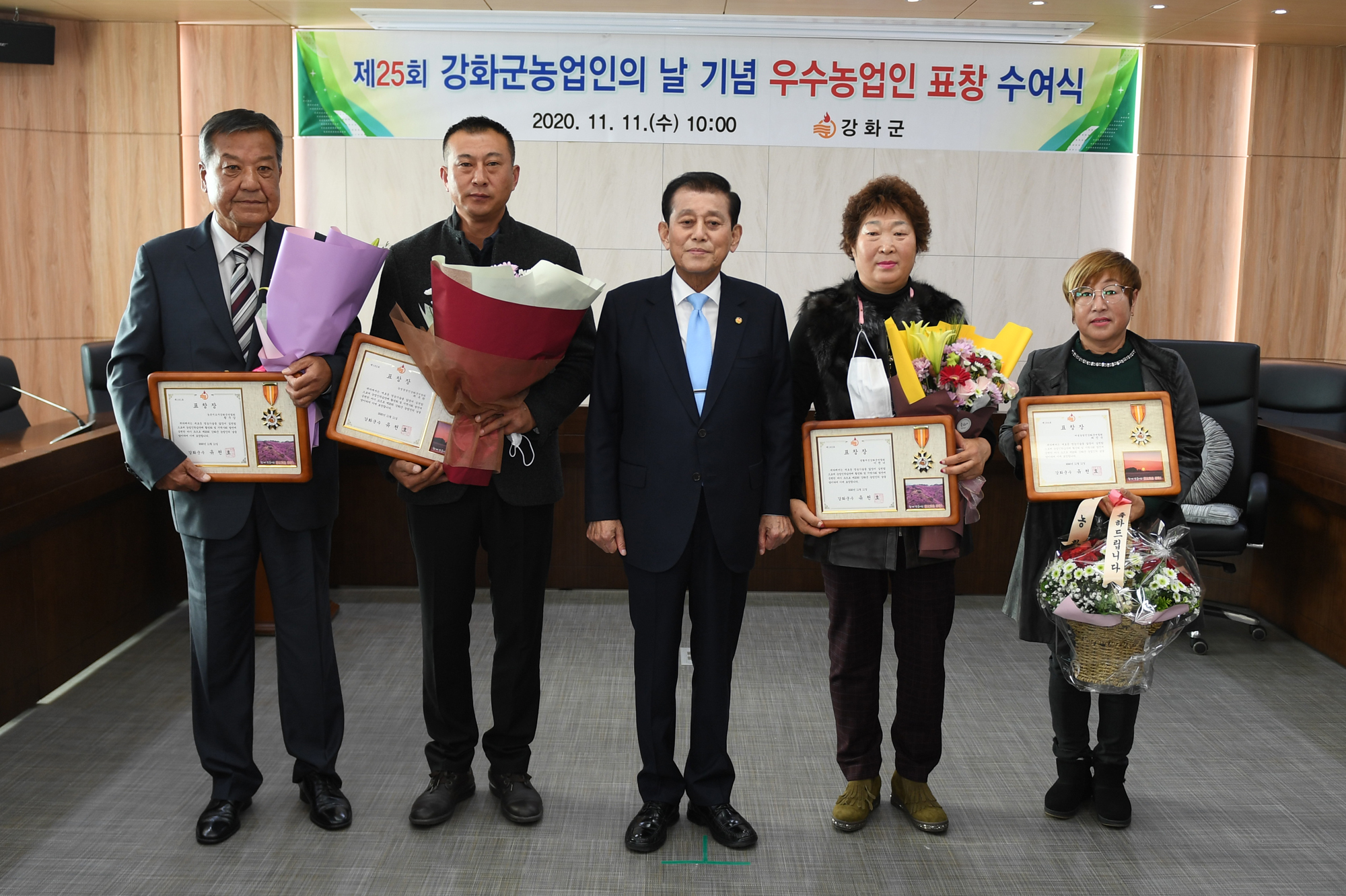 강화군(군수 유천호)은 11일 강화군청 2층 영상회의실에서 제25회 강화군 농업인의 날을 맞이해 맡은 바 소임을 다해온 우수농업인에 대한 표창을 수여했다.