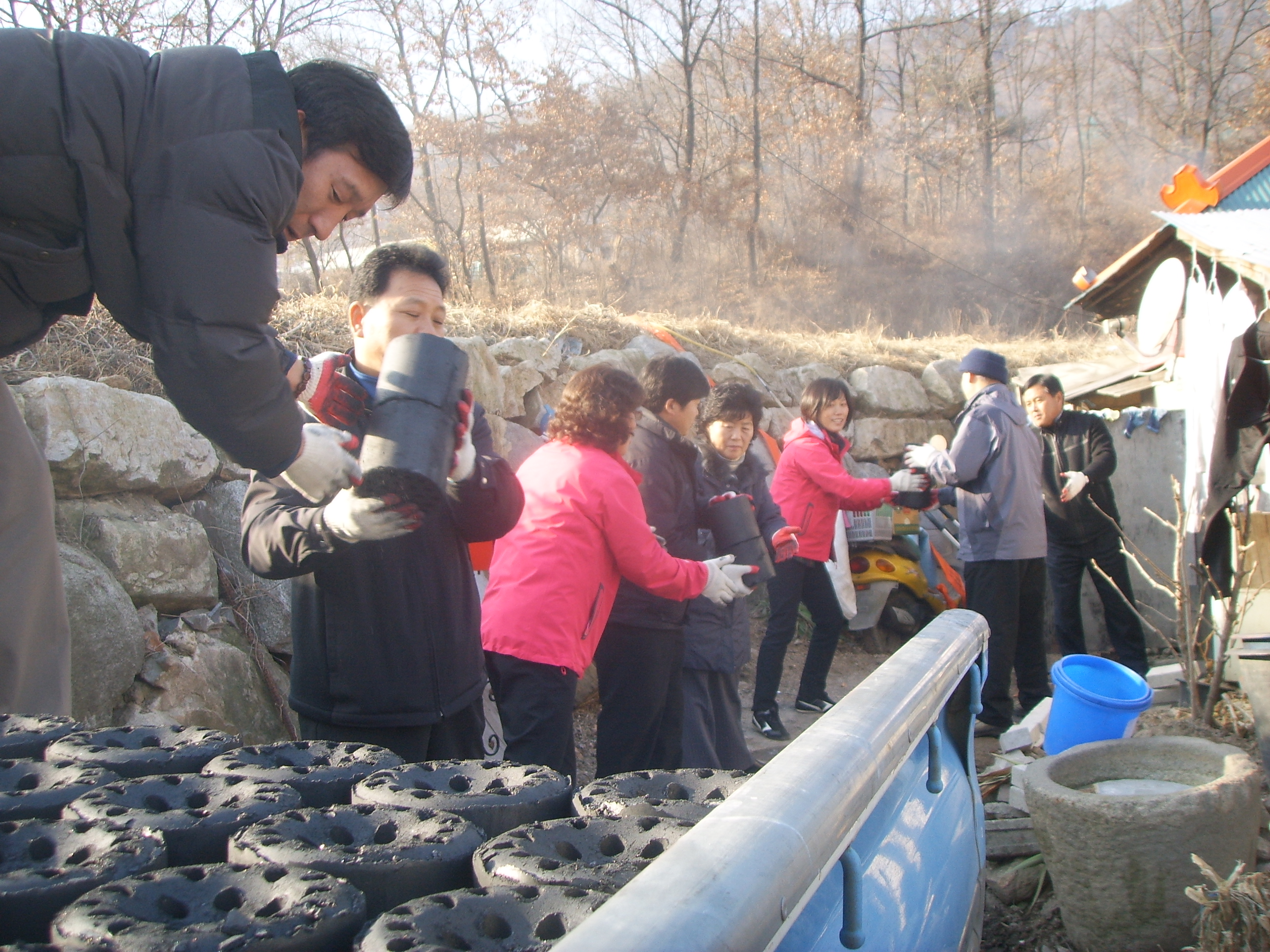 (사진설명 : 강화읍주민자치위원들이 불우이웃에 연탄을 나르고 있다)