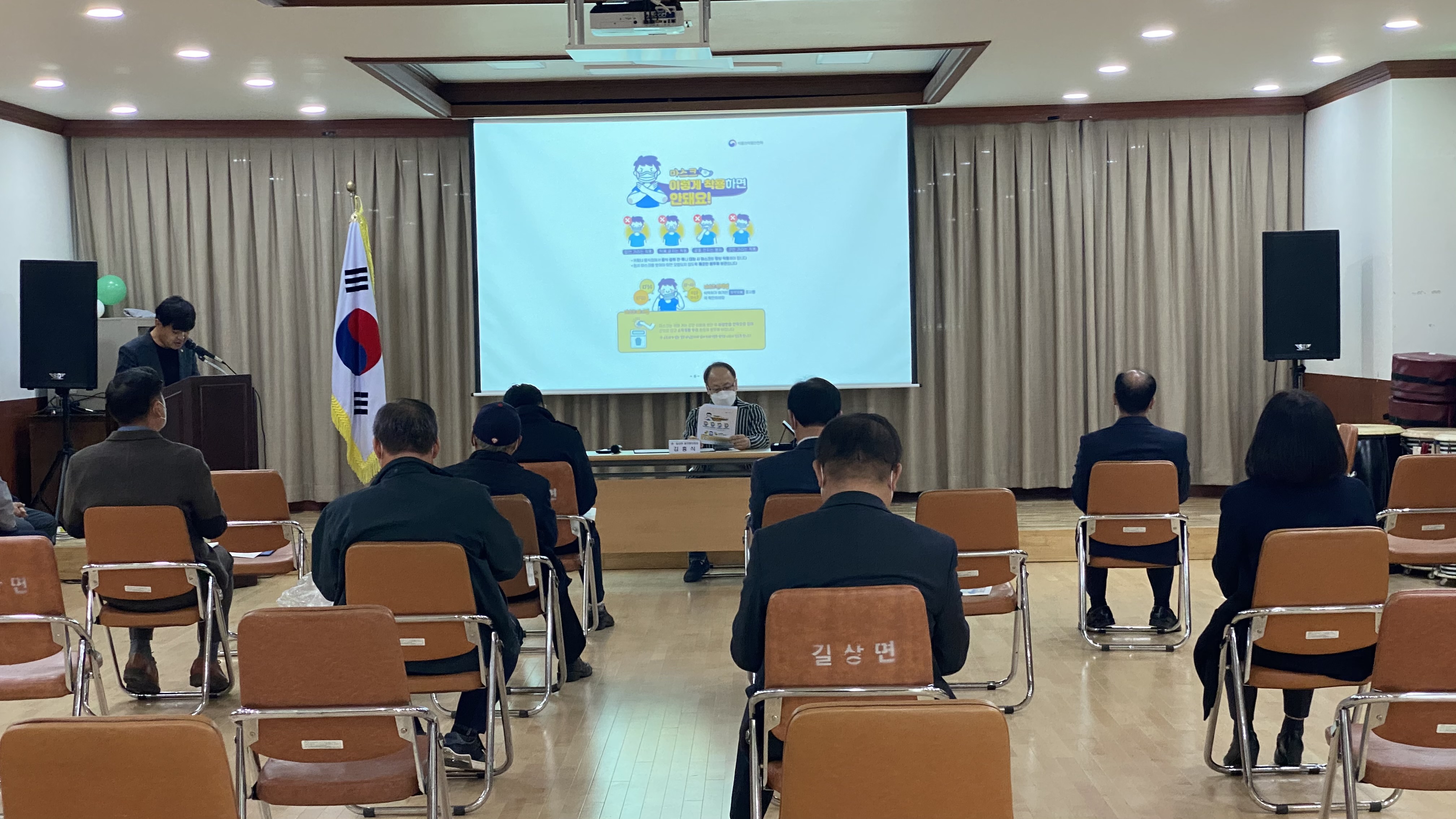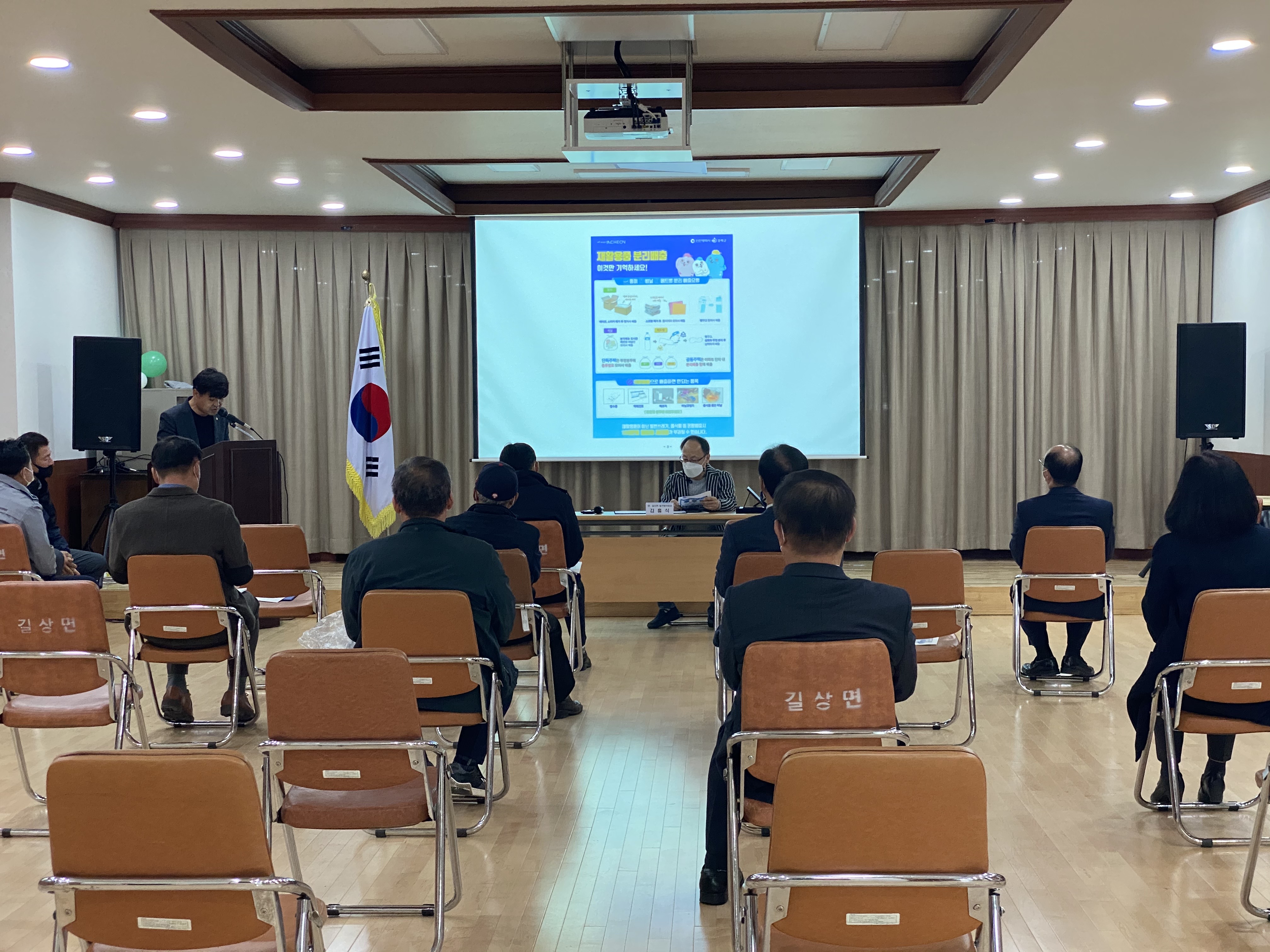 길상면 발전협의회는 관내 각 기관·단체장들로 구성된 단체이다. 이날 김재구 면장은 쓰레기 대란으로 인한 심각한 환경오염과 쓰레기로 인한 막대한 경제적 손실 등을 설명하며 레기 감량과 분리배출의 중요성을 직접 홍보해 위원들의 이해도를 높였다. 또한, 마스크 착용 의무화 행정조치에 따라 마스크 미착용 시 과태료 부과대상시설, 착용 가능한 마스크 종류, 마스크 착용법 등을 설명하며 마스크 쓰기를 생활화할 수 있도록 발전협의회가 앞장서 주시길 당부했다.