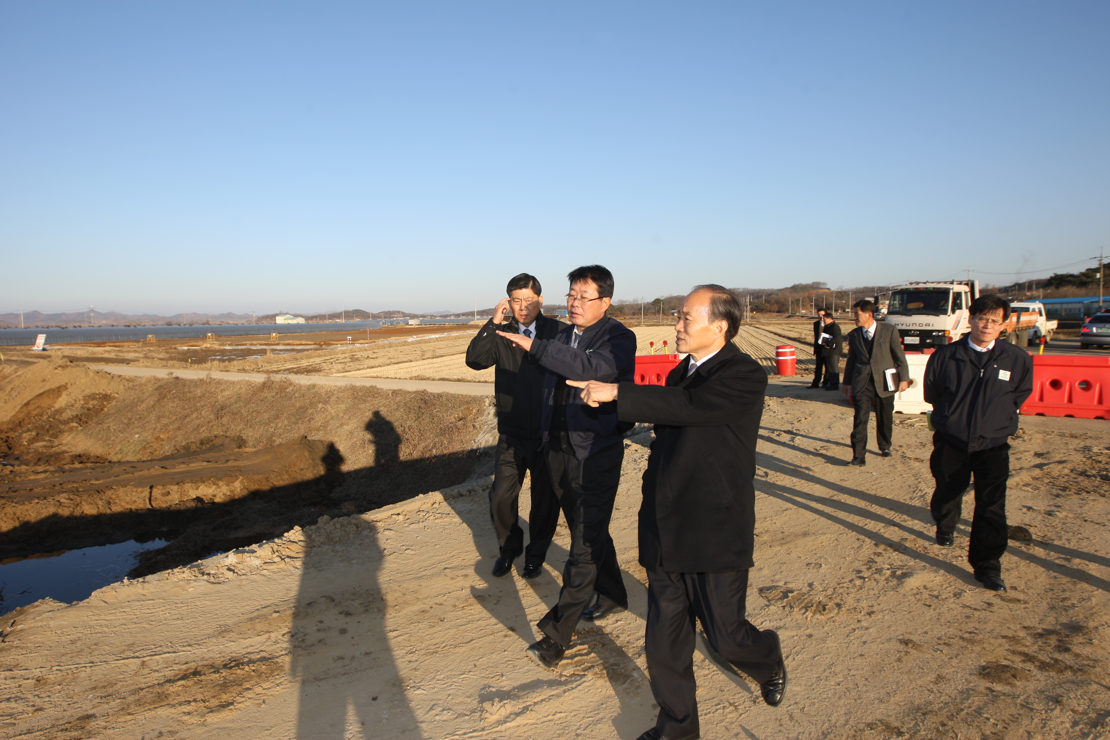 (사진설명 : 안덕수 강화군수가 새해초부터 48국도 우회도로공사현장을 확인하고 있다)