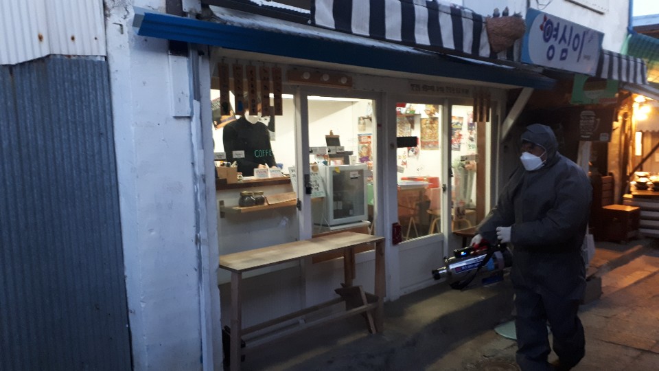 교동면 이장단은 지난 26일 방역에 필요한 보호장비를 착용하고 교동면사무소 일원, 대룡시장 일원, 제비집 주차장, 버스정류장, 공중화장실 등 다중 이용시설의 대대적인 방역을 실시했다.