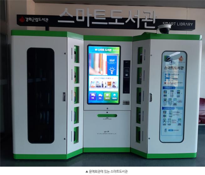 강화터미널과 강화문예회관에 설치된 스마트도서관에는 350여 권의 도서가 비치돼 현장에서 원하는 도서를 골라 즉시 대출과 반납이 가능하다. 무인으로 도서를 대출·반납할 수 있고 접근성이 좋아 주민들로부터 큰 호응을 얻고 있다.